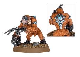 Their technical skills can make a Jokaero an incredible resource to other races that can control them. However, such a task is incredibly difficult and near impossible as they tend to build only to fulfill their immediate needs. As such, attempts at capturing them to compel them to work often fail disastrously. Jokaero prisoners are known to create items which allow them to escape. Inquisitorial retinues that possess a Jokaero Weaponsmith in their ranks often see the creature immediately making its mark in the group where it performs minor yet perplexing modifications to weapons and wargear. These “enhancements” do not always provide an advantage to the item in question but simply “feel” right to the creature. This can often be quite frustrating to a Jokaero’s allies due to their angry exception to their Adeptus Mechanicus sanctioned equipment that is being altered to suit the aesthetic whims of a Xenos ape. However, few refuse the efforts of the Weaponsmith. The random nature of the upgrades are impossible to predict. A Jokaero is equally capable of turning a las-cannon into something formidable after a few moments of inspiration or simply add a decorative knotwork to the barrel.