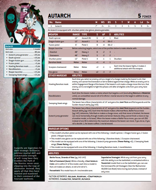 Didn’t the Aeldari just get a new codex? Yes. And now they are getting an updated Datasheet for the Autarch.