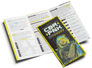 Why CBR+PNK? After an absence from the gaming table brought on by too much day jobbing and illness, I wanted to get back to slinging dice. But what should I play and with whom? My time was limited, so, as crass as this might sound, my significant other was the ideal player. Not that it’s a problem, just choosing someone close to hand sounds like you’re not doing your due diligence, but there’s a desire on both our parts to get back to gaming, so it worked nicely. As to genre, my significant other discovered a hither-to unknown sci-fi subgenre [to them]: Cyberpunk.