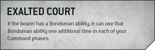 There’s even a “level-up” version that is known as the Exalted Court. These high-status lords get to use those Bondsman Abilities an extra time per turn!