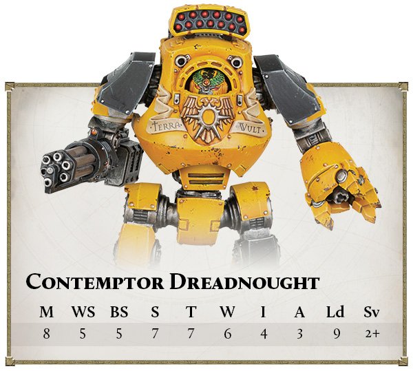Dreadnoughts of all shapes and sizes got a rework. They no longer have the Front/Side/Rear Armor profiles. They are now treated as really big infantry models with a stat block akin to a Marine — only better. This has it’s pros and cons but it’s a noteworthy change! Oh, one other change is a many of the Elite units now have two wounds. Looking at you Terminators.