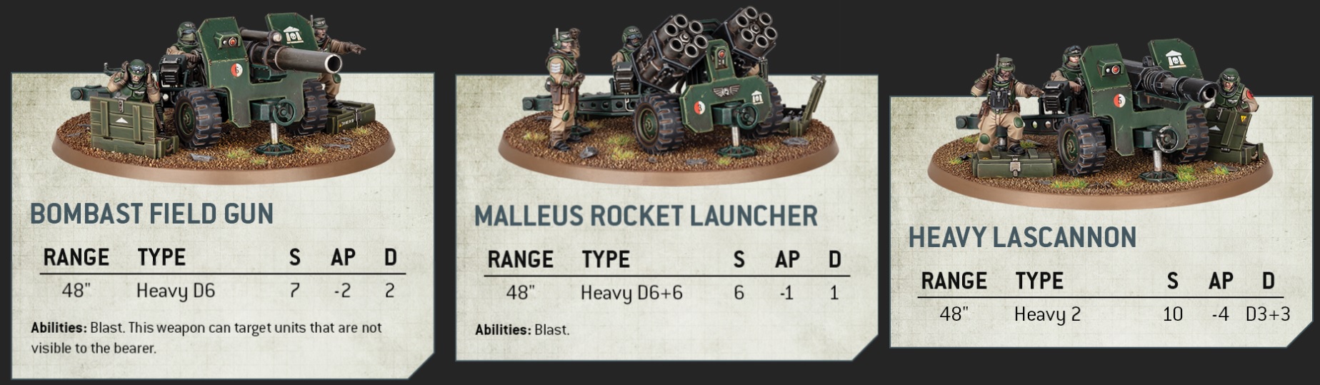 Each of these massive new weapons brings the boom in their own way. On the plus side, they can all reach out and touch the enemy at 48″ so you won’t have to sacrifice range for any of them. You really just have to choose the role you want them to play and build around that.