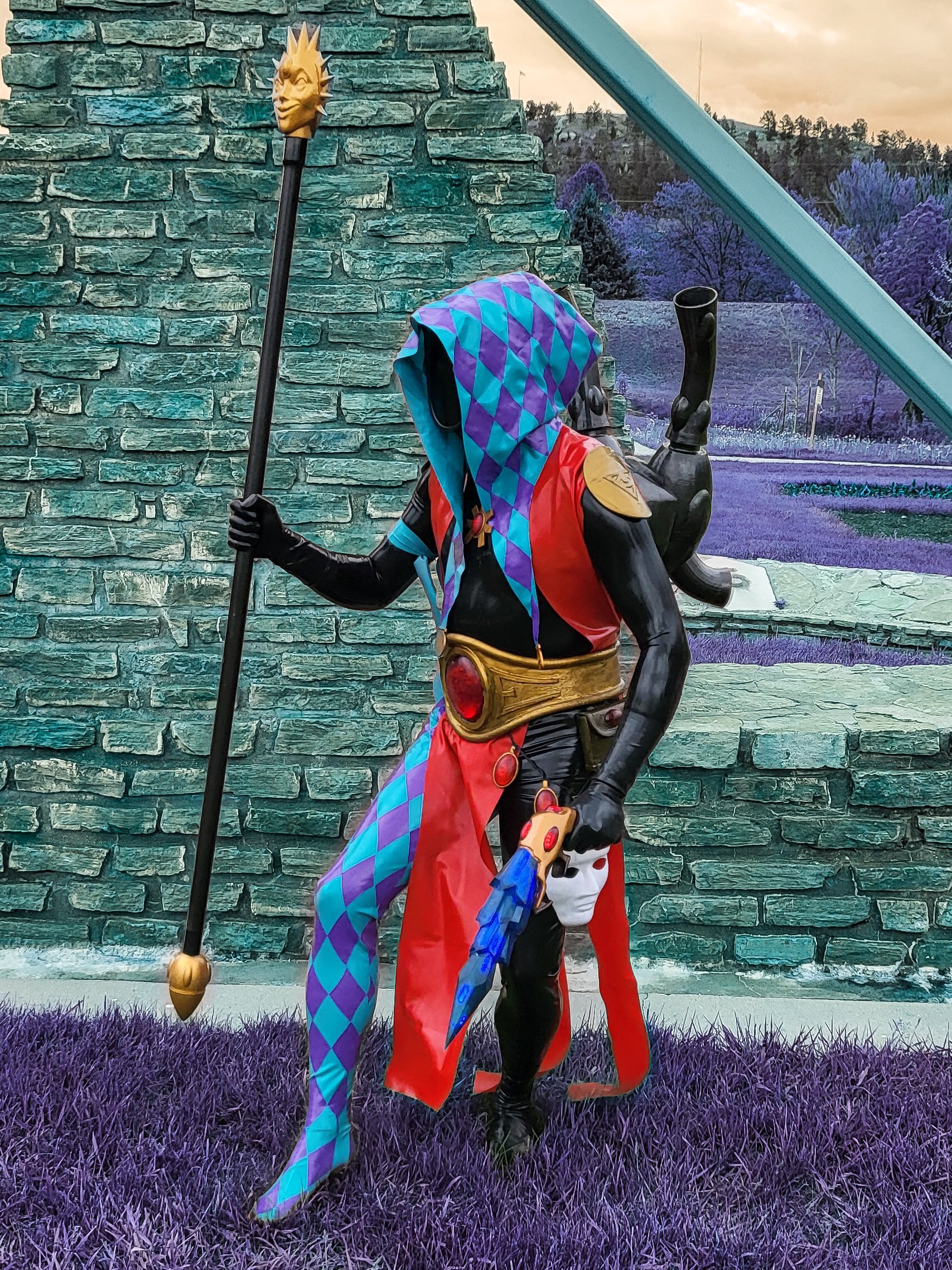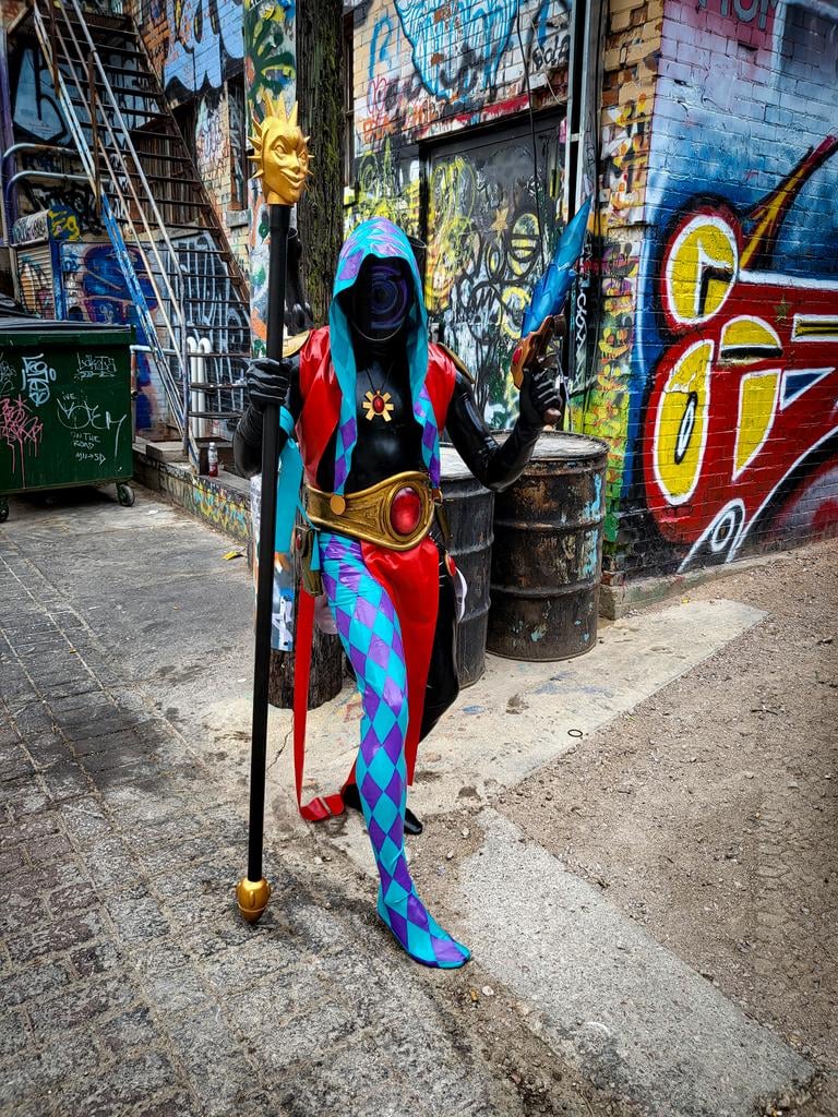 The Aeldari Harlequin Shadowseer is not a common cosplay choice for 40K, but one I thought would be fun to do. I have been into Warhammer for many years since I was a teenager. Aeldari was always my goto army for 40K. I always enjoyed playing them. I took a break from playing and when I got back in I thought I needed to challenge myself with my painting skills. I decided I would do a Harlequin army because of how flashy they look. This is also the main reason why I choose to do this cosplay. I normally do cosplay items based on things I enjoy and things that reflect a bit of myself.
