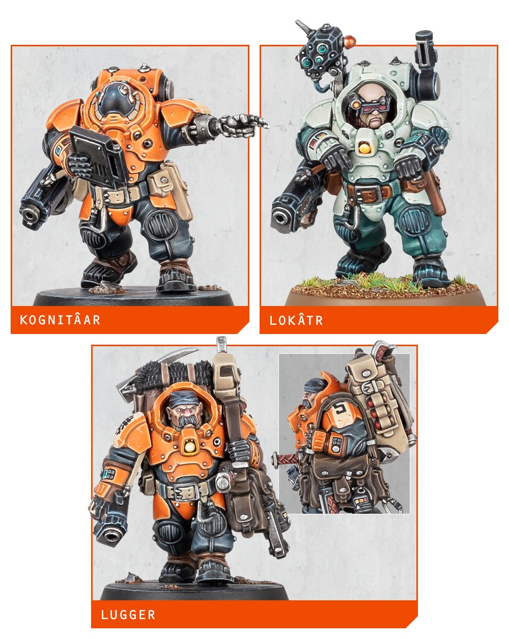 Now, which specialists will you be able to create? Good question! Here’s a look at all the various operatives from the Hearthkyn Salvagers Kill Team: