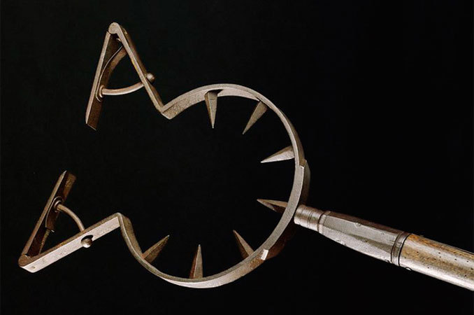 Let’s start things off right. This weapon does exactly what it says it does–it’s a highly specialized polearm with a spring-loaded set of sharpened jaws, designed to capture without killing. Mancatchers are the great equalizer, because they always hit AC 10 (plus or minus Dex), and on a hit immediately catch a character. Caught targets lose shield and Dex bonuses and can be pulled or pushed, dealing 1d2 points of damage per round–but the real kicker is those hapless targets are held in place, and can be pulled to the ground where it’s much harder to get in a fight.