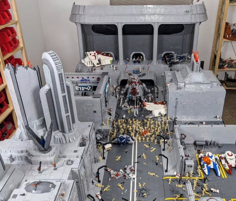 This massive LEGO Battle of Coruscant diorama includes thousands of pieces and over a dozen Star Wars ships.