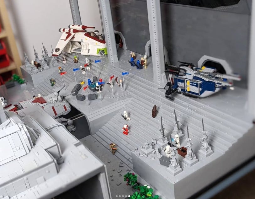 While Revenge of The Sith focuses on the space battle portion of the battle, there is also a massive ground battle going on at the same time. This is epically covered in the third season of Genndy Tartakovsky’s animated Clone Wars show. This stunning MOC brings that amazing ground combat to life in LEGO!