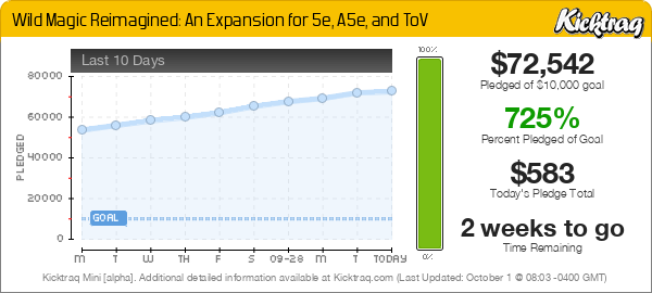 - WHY SPOTLIGHT THIS CAMPAIGN? This book offers you over 300 pages of wild magic for your Dungeons & Dragons Fifth Edition (2014 and 2024), Level Up! Advanced Fifth Edition, and Tales of the Valiant campaigns. In the book, there are 700 wild magic effects, new subclasses, monsters, and more. The secret sauce is the wild magic effects flavored with positive, neutral, and negative variants as well as magical themes. You’ll discover 35 wild magic calamities that will reshape your campaign in unexpected ways. If you’re a fan of wild magic, this Kickstarter may present some options for your gaming table.
