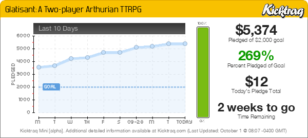 - WHY SPOTLIGHT THIS CAMPAIGN? A TTRPG duet is a two-player game. Glatisant offers a variant of that with a two-gamer, round robin GM style of play. You’ll play as the gallant knight and the questing beast, each taking a role in creating this world’s myths. Lay out face down playing cards, turning each to setup a scene. Using this 40-page rulebook, you’ll tell tales of heroism, love, and adventure. If you’re interested in an RPG duet, this Kickstarter provides an interesting option.