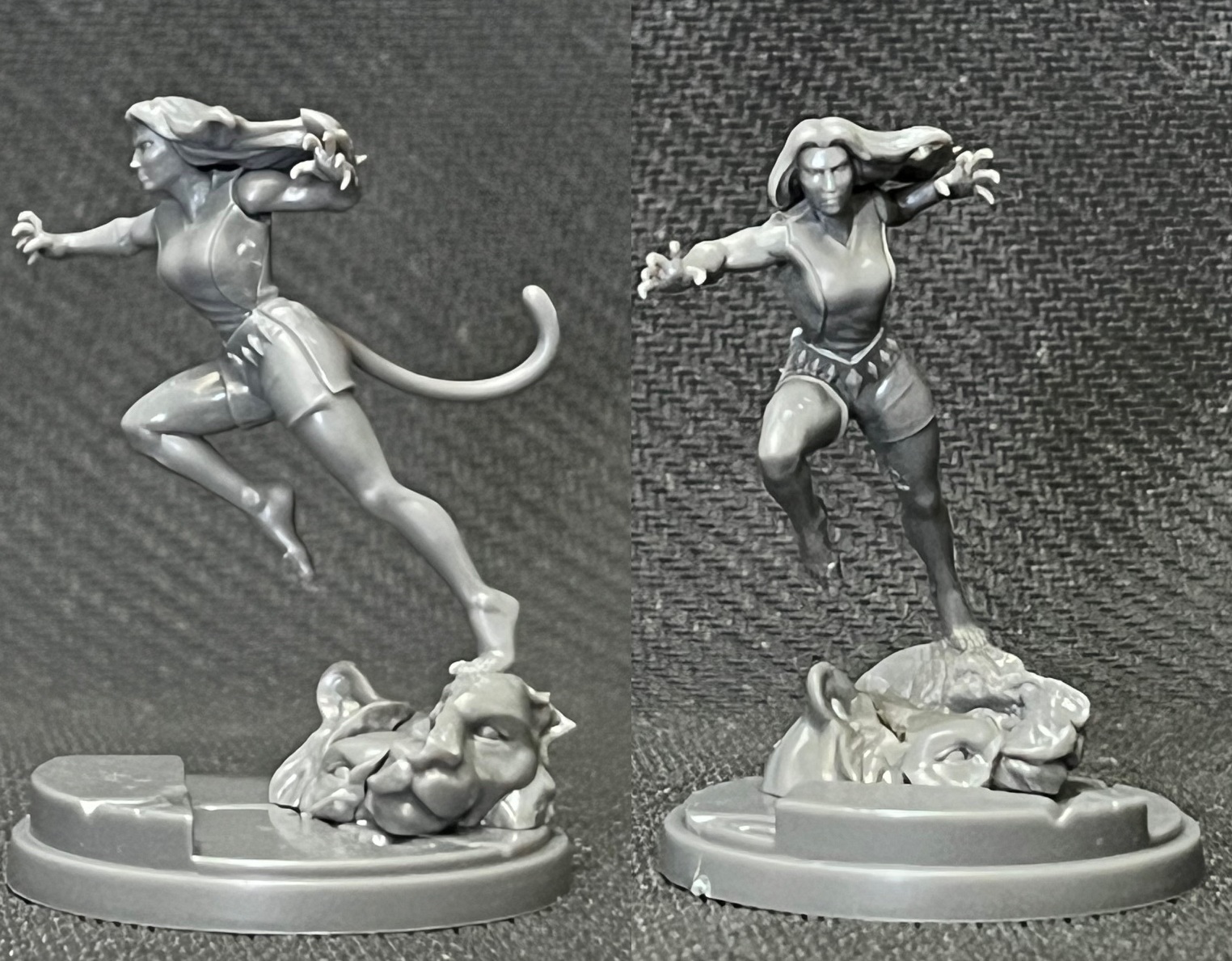 The minature itself was a super easy build. Her front torso and legs are one piece while her back attaches right in. Her head is one bit and her two arms slot in nicely. I didn’t notice it while building her, but there is a slight gap on her neck. I’ll fix that when I paint her — same with any minor burs on the miniature. Anyhow, this was a super easy build and I like the pose. She reminds me a little bit of a Hand Ninja… I kind of want to run her with Elektra and Psylocke in a “Ninja Ladies” list now.