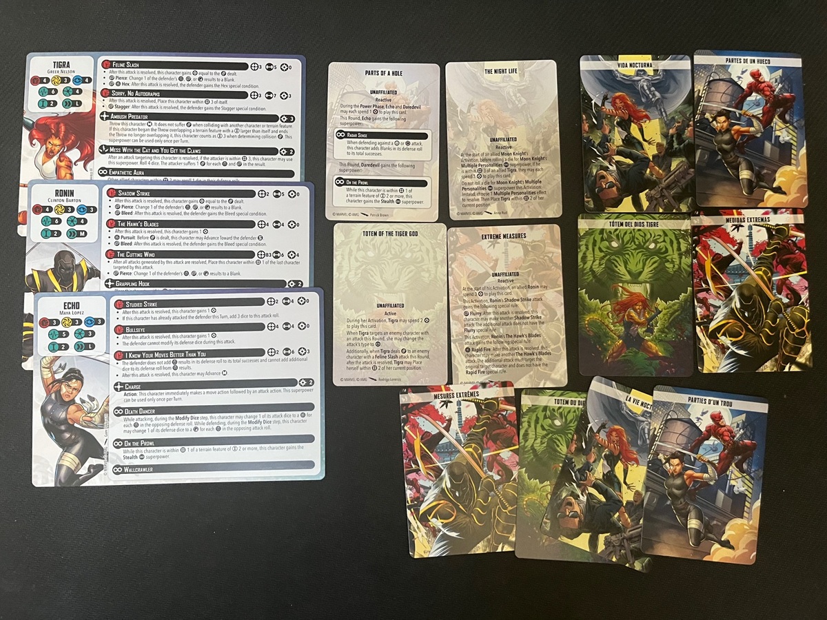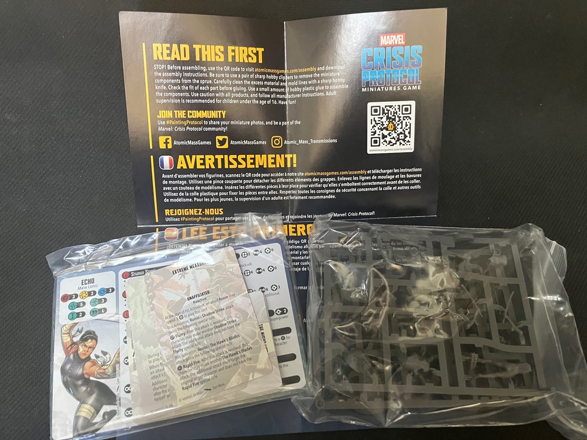 If you’d like a deeper dive on the character stats and team tactics cards, we covered that as well. Plus there’s much better pics of the cards in that article, too. And yes, there’s two links there because there are separate articles for Echo and Tigra another for Ronin. Anyhow, let’s check out those sprues!