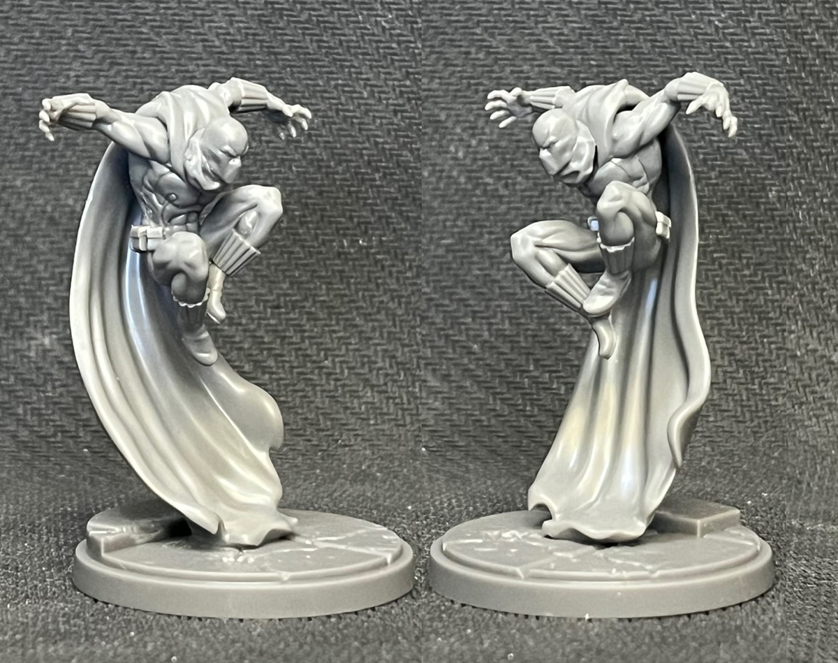 As far as the Prowler goes, this was by far the easiest to build from the batch. This time around his cape is actually the anchor point on the base. But AMG made a smart move by making it a separate piece that connects at the top, sort of near the top of the shoulders. This makes the build really easy as you assemble the body and legs, glue them in place to the cape, and then attach the arms. The head is a separate bit that slots in nicely, too. I like the leaping/pouncing pose as well, it’s kind of spooky.