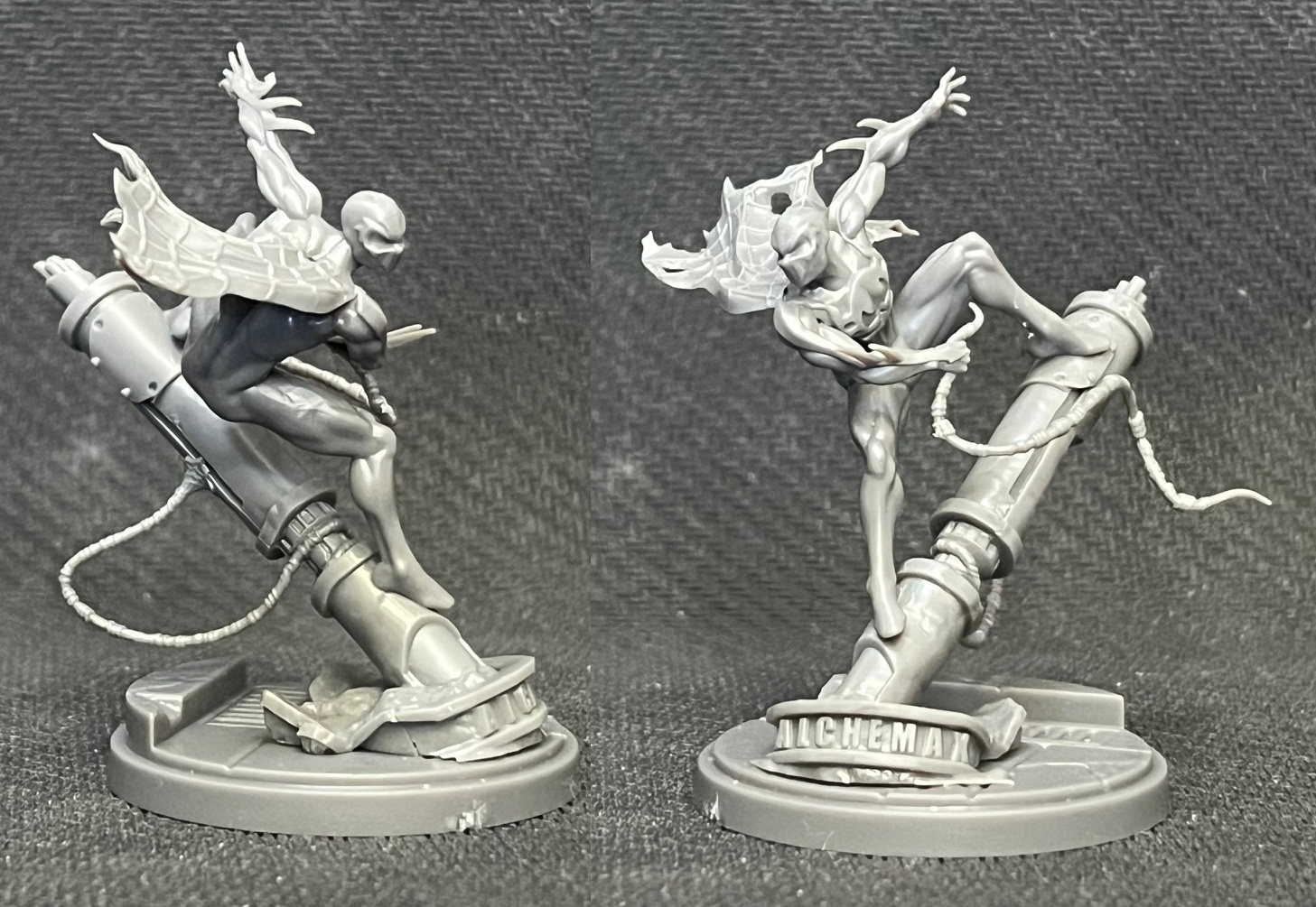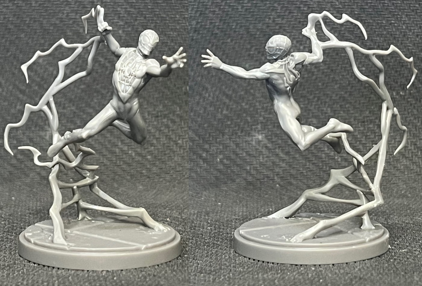 I really liked this pose for Miles as it shows him with a lot more mastery over his abilities. The flying leap with the Venom Blast ready to KO a baddy is cool. That said, this miniature was a bit of a pain to get set right…until I had an epiphany.