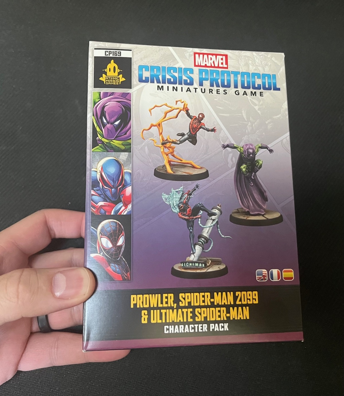 When this set was first revealed I was pretty pumped. Spider-Man 2099 and Ultimate Spider-Man along with Prowler in one box? This feels straight out of the movie and I’m here for that. So now that Atomic Mass Games sent us a copy, I had to get in there and build these miniatures. So let’s see what they are all about.