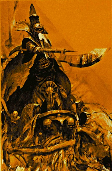 It was the head of the Mortuary Cult, Grand Hierophant Khatep who broke the seals to the tomb of Settra as battles raged between the various rulers. Settra came forth with his legions and as in life, would allow no rival to his rule, destroying for ever dozens of lesser kings who stood against him until all present bowed their head to him, Arkhan the Black fleeing the area.