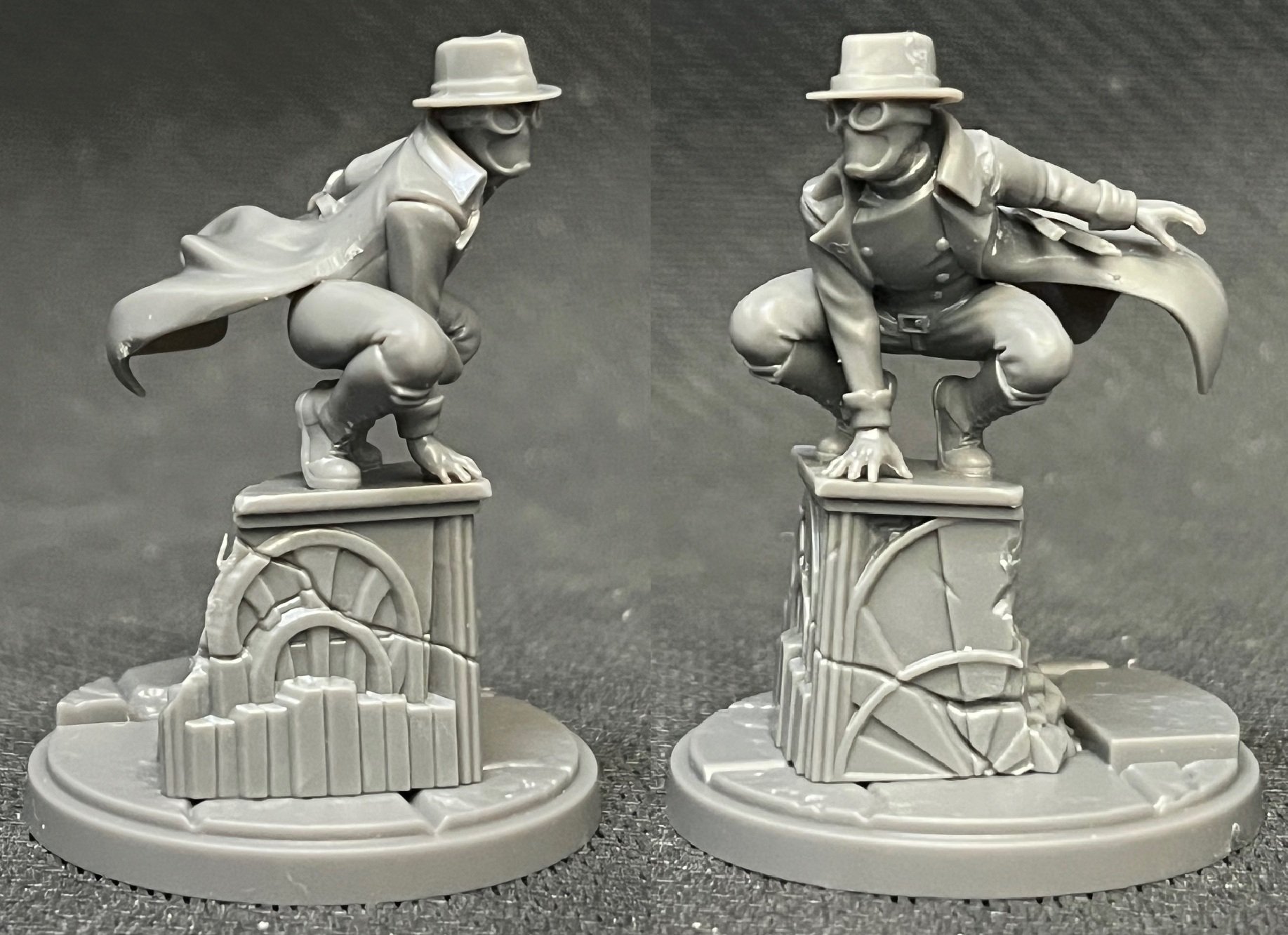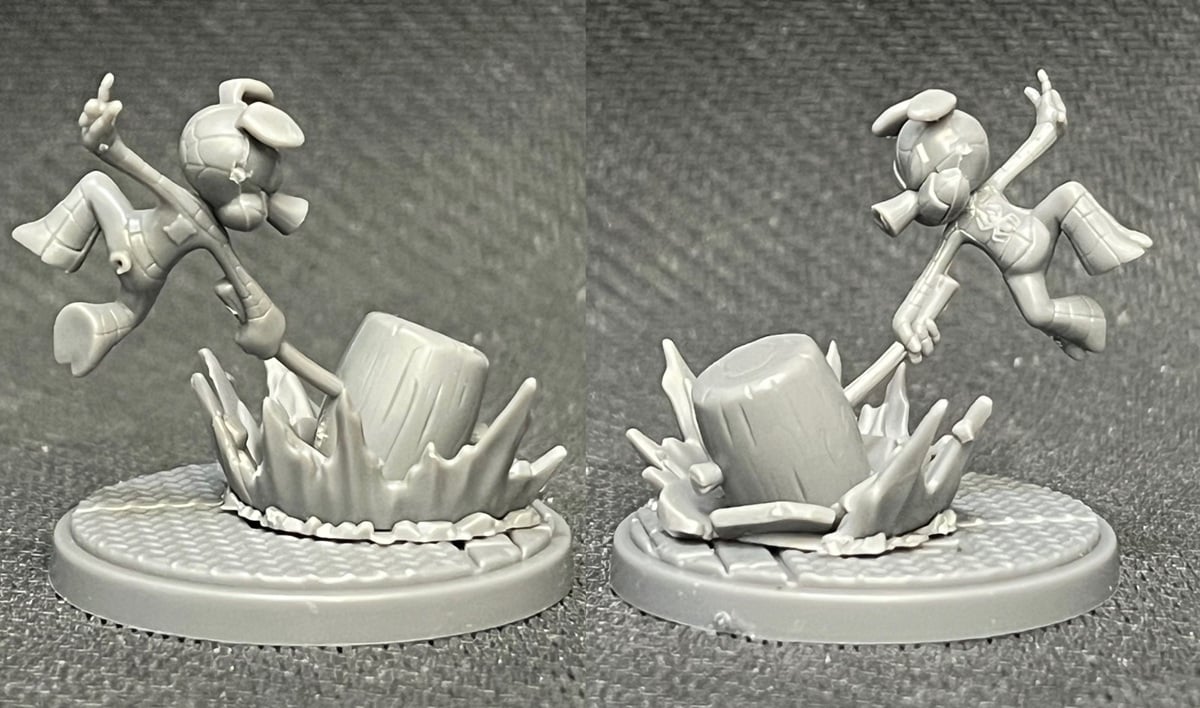 Spider-Ham comes with the oversized mallet and a “WHACK!” in comicbook text you can add — if you choose. My apologizes about the flash still on the head and on this miniature. I thought I got most of it when I was assembling but I noticed the head flash after I had just added glue and I wanted to let it set first before scraping it off. It’s cured now that I’ve taken photos so I’ll fix all that before I get into painting.