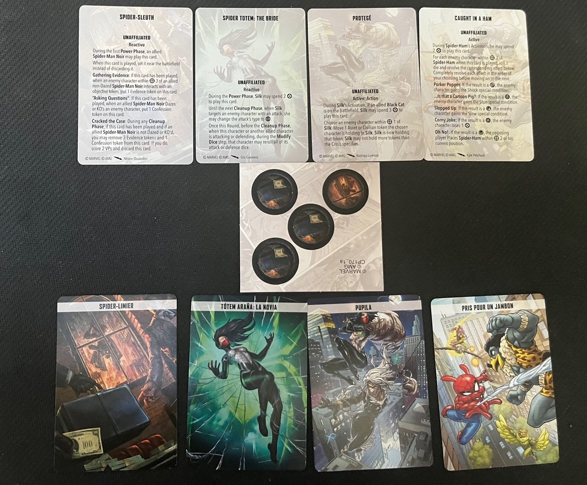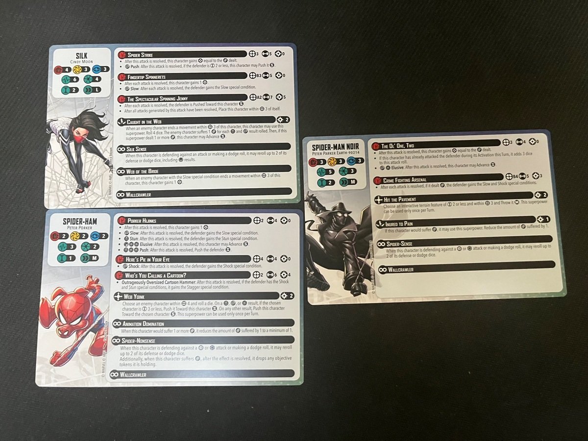 This box is packing both serious and very un-serious fun. Spider-Ham has a level of cartoonishness that can’t be ignored. While Spider-Man Noir and Silk both come from much more dangerous backgrounds. I can’t wait to try them all out on the tabletop.