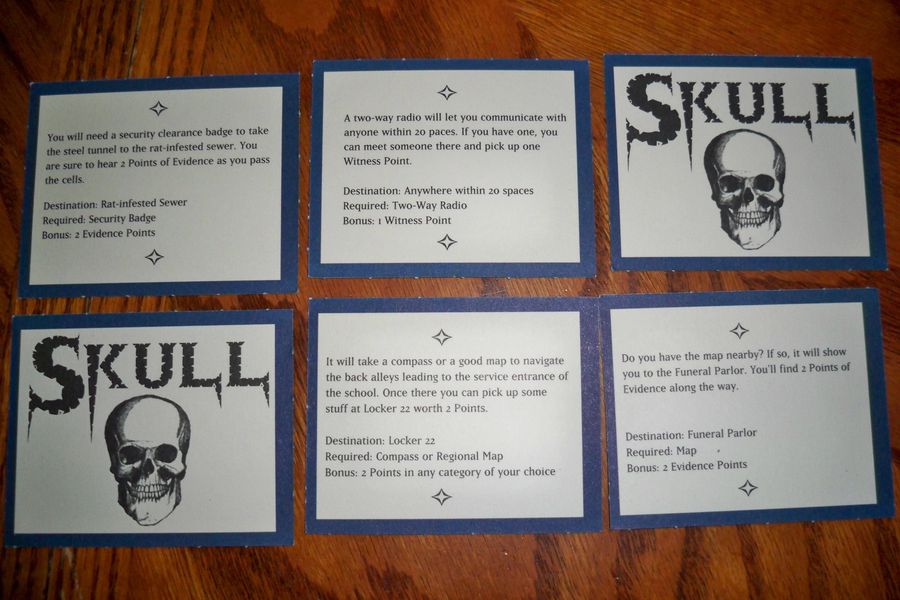 If a player moves into a Destination, they roll to gain the stat bonus listed at that location, plus any bonus stats from the Secret Passage card, if they have the right Tool. All of the locations are direct references to a location in one of the episodes, which doesn’t really add much, but it’s a nice touch. They could have very easily just gone with Super Spooky Woods and called it a day.