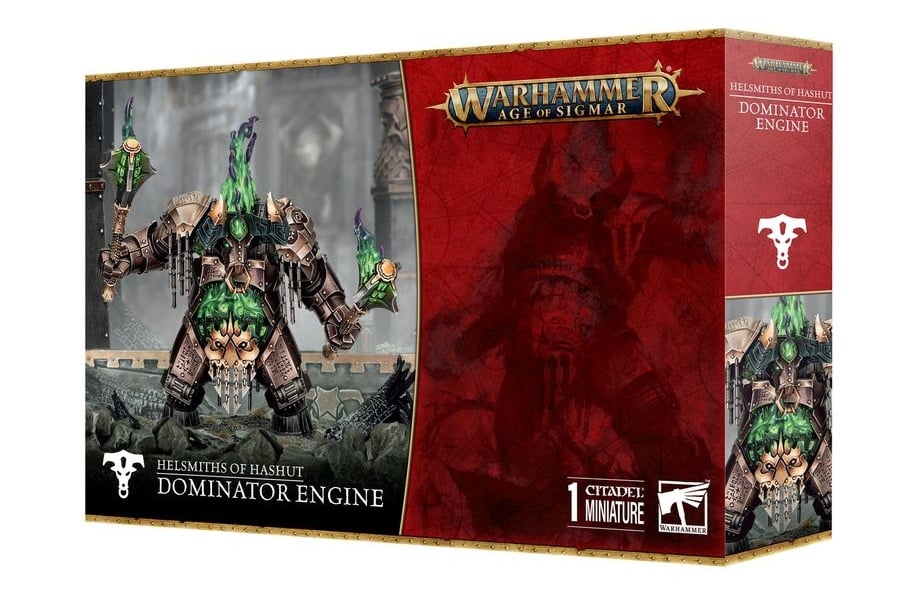 This multipart plastic kit builds one Dominator Engine, a daemon-infused war machine for your Helsmiths of Hashut armies in games of Warhammer Age of Sigmar. These walking icons of oppression splinter the very earth beneath their tread as they relentlessly make their way across the battlefield. Any foolish enough to linger in their way will be obliterated and their soul will burn in Hashut’s inferno for evermore.