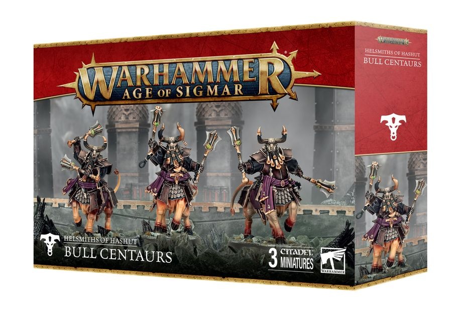 This multipart plastic kit builds three Bull Centaurs, powerful line-breakers for your Helsmiths of Hashut armies in games of Warhammer Age of Sigmar. Powerfully muscled, with hooves and horns, they are especially deadly as they charge into combat, pulping their enemies with blows from their brazen mauls. These imposing miniatures encapsulate everything brutal and intimidating about the Helsmiths of Hashut, making them a key unit in any collection and a great place to showcase your painting skills. The kit includes four sets of interchangeable horns and parts to build an optional unit champion.