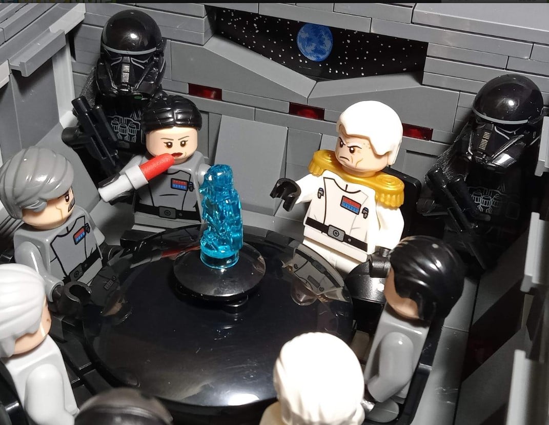 So why should you care about this build, when there is a bigger one? Well look, any ISD build is super cool, but this one does have some things going for it. The first is that its got a very detailed interior that the ship comes apart to show off. Inside you’ll find conference rooms, a bridge, an engineering room, a canteen, barracks, and a full hanger bay with deployable TIE-fighters! All of that is super cool and gives you a lot of play features.