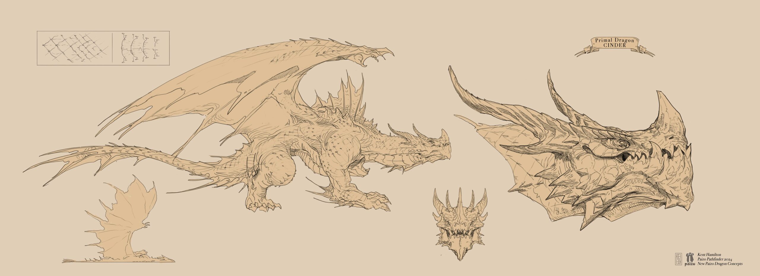 Hello, hello! Luis Loza here! You might have heard that we will be unleashing a massive flight of brand-new dragons with the upcoming releases of Pathfinder Monster Core 2 and Pathfinder Lost Omens Draconic Codex. While I love previewing new dragons and showing them off one by one like an excited grandfather sharing the mass of pictures in his wallet, I won’t be able to do that this time around. Unfortunately, we have too many new dragons! With that in mind, the plan is still to preview a few dragons over the coming weeks and even give some behind-the-scenes insight by sharing the concept art by our very own incredible concept artist, Kent Hamilton.