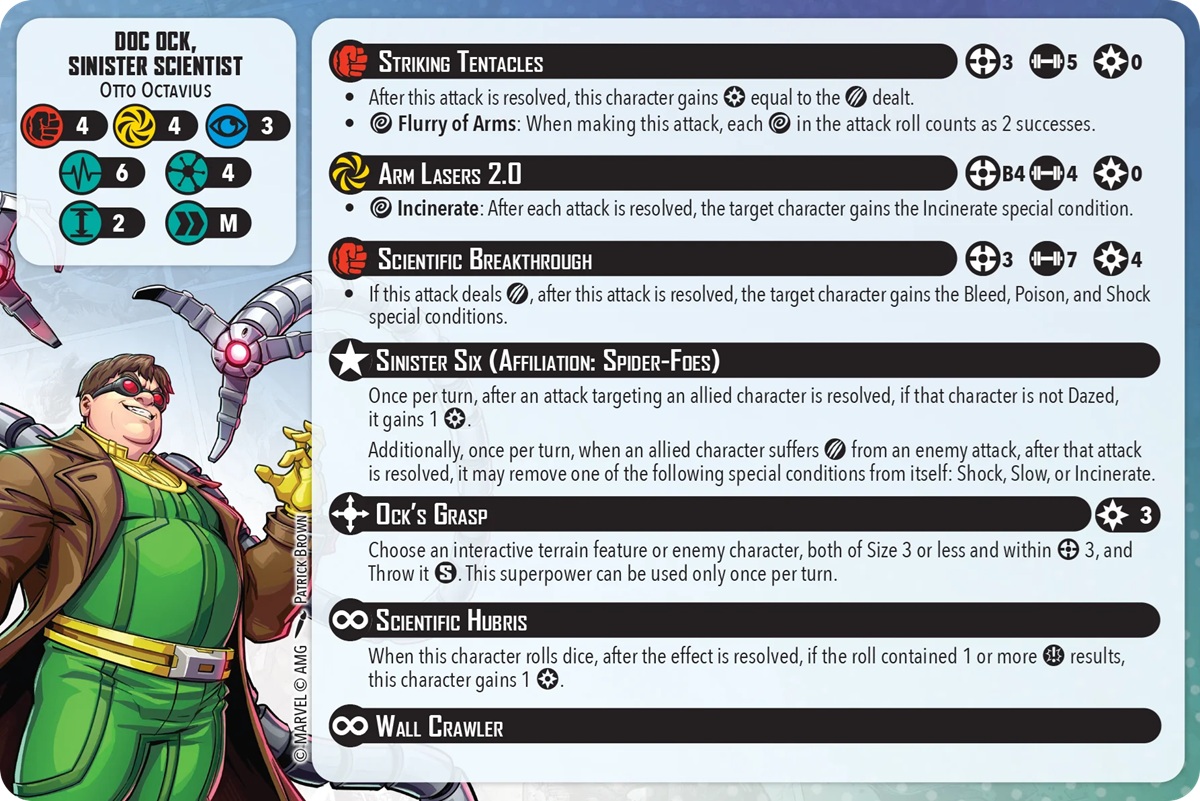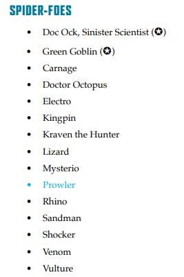 Venom and Prowler are both part of other Spider-Man related character packs now, too. And Doc Ock (1) is from the original Core Set which is probably the best place for you to get that version of him if you’re going with the Spider-Foes Starter Pack to get into the game. The other option is the Spider Foes Affiliation Pack, but you’d be doubling up on three other characters so…yeah.