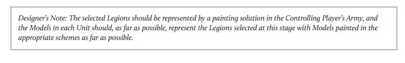 At it’s core these rules are there to represent a fighting force that’s made from the remnants of two to three other Legions. They get a special Mutable Tactic that’s based on their Legion of Origin. There a few restrictions and changes on how this works. There’s also a strong suggestion that you also paint your units appropriately:
