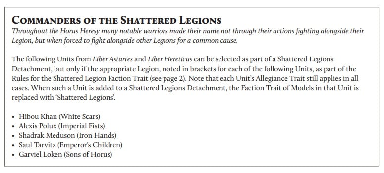 I get it. This seems like it’s more for a narrative bend so it’s probably a good idea to paint your Legion to match the rules you want to use. Otherwise, play Blackshields. There’s also a handful of selected Shattered Legions Commands you can opt to use:
