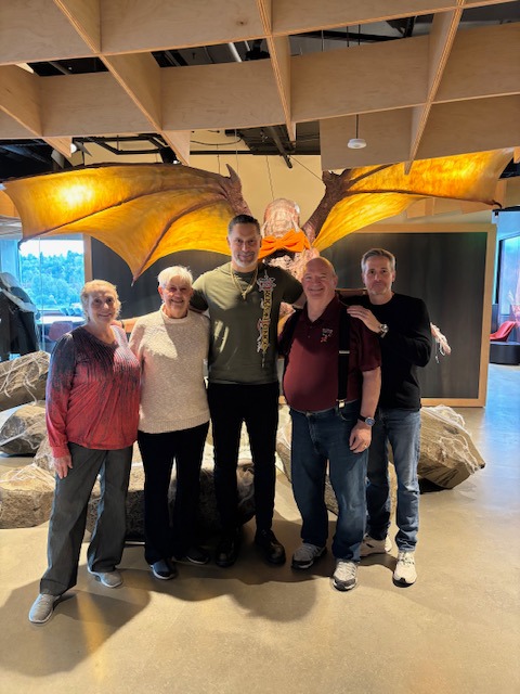 Let me introduce you to people. Left to right: Laura Hickman, me, Joe Manganiello, Tracy Hickman, and Dan Ayoub, the new head of D&D at WotC. I can’t say much more than that, but that might give you a clue.”