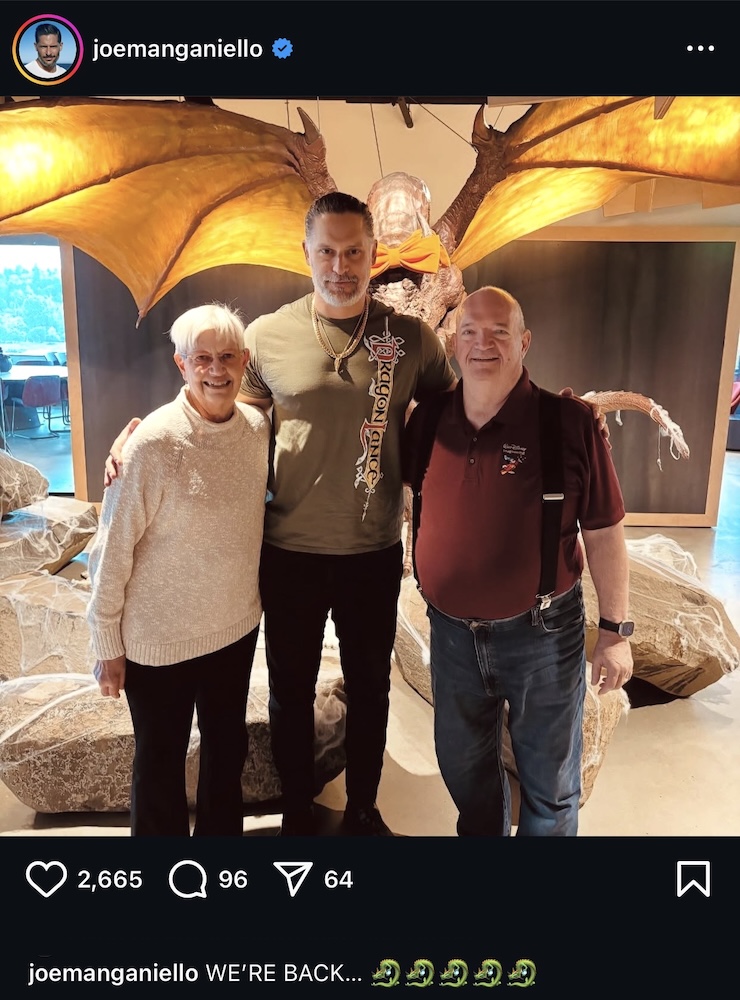 Not long after, the two surfaced at Darrington Press. But at WotC, a new role, “Head of Franchise” emerged, held by Dan Ayoub, who had worked on the Halo franchise. Which brings us to Margaret Weis’ Facebook page, and a post that hows an even bigger picture than the one featured on Joe Manganiello’s Instagram page.