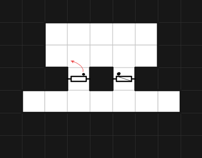 Even the standard door symbol could benefit from additional bits of information. In the example below, I’ve added a dot like a door knob on one side to show which direction the door swings (as indicated by the red arrow, which isn’t strictly necessary, but shown here for clarity). Players constantly ask how a door opens so they can judge how to use such a choke point to their advantage. So why not go ahead and include these details on your map? A diagonal line (shown on the other door symbol) can indicate a locked door. Two diagonal lines in a crisscross design can mean the door is barred, while a solid black door might convey a door that is both locked and barred, stuck, trapped, or in any other state you desire.
