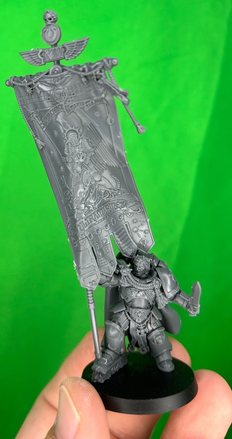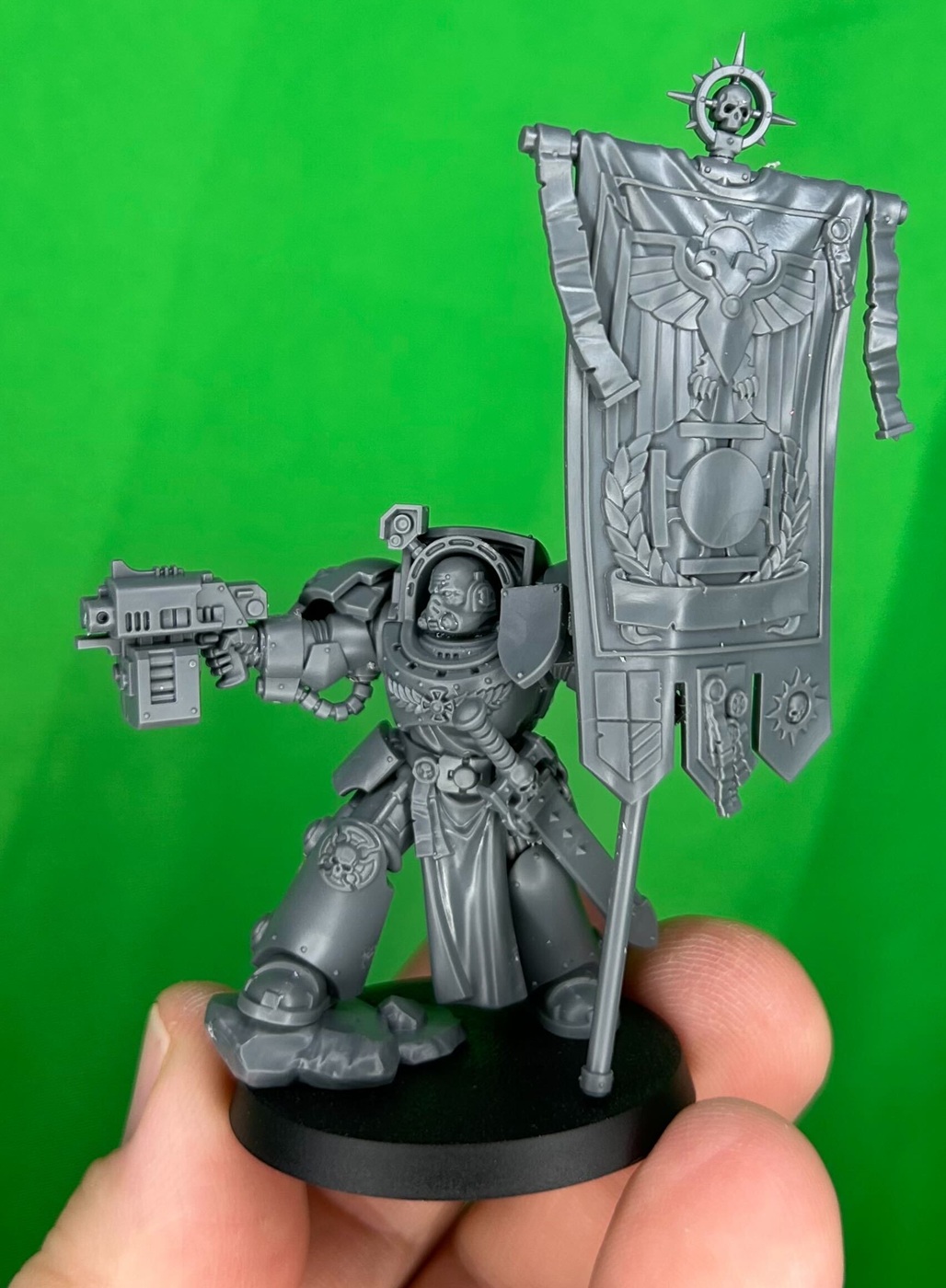 The Terminator Ancient is also here, too. This one does look pretty epic so I’ve got no complaints here. This miniature does have 4 total head options to work with, too. I’m also glad that it’s generic enough that you could really paint this one up as (almost) any chapter. I’m not 100% sure, but you should also be able to do head swaps with other marines or even swap out the banner for another one if you’ve got a particular one you like. It’s a neat miniature. And about that banner…