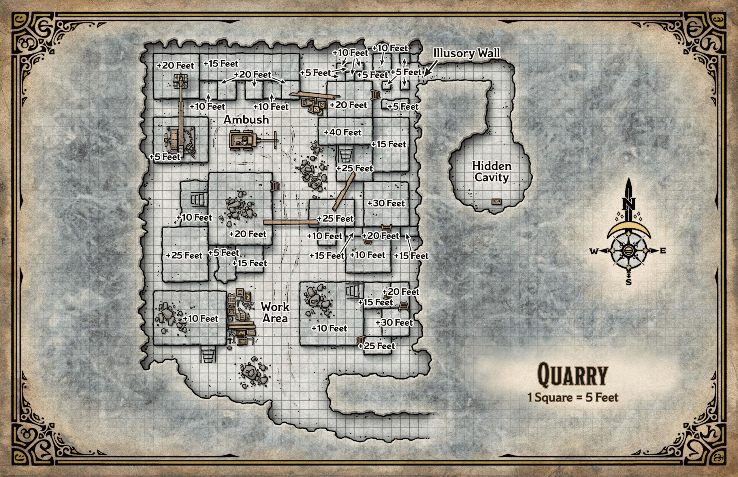 “A cult devoted to Orcus has hidden a demonic stone in a basalt quarry in the village of Helmsdale in Damara. The stone gives off waves of magical fear and despair, overwhelming workers and transforming some into Undead. A monk of the Yellow Rose monastery, Brother Trasig, investigated the quarry but has never returned.”