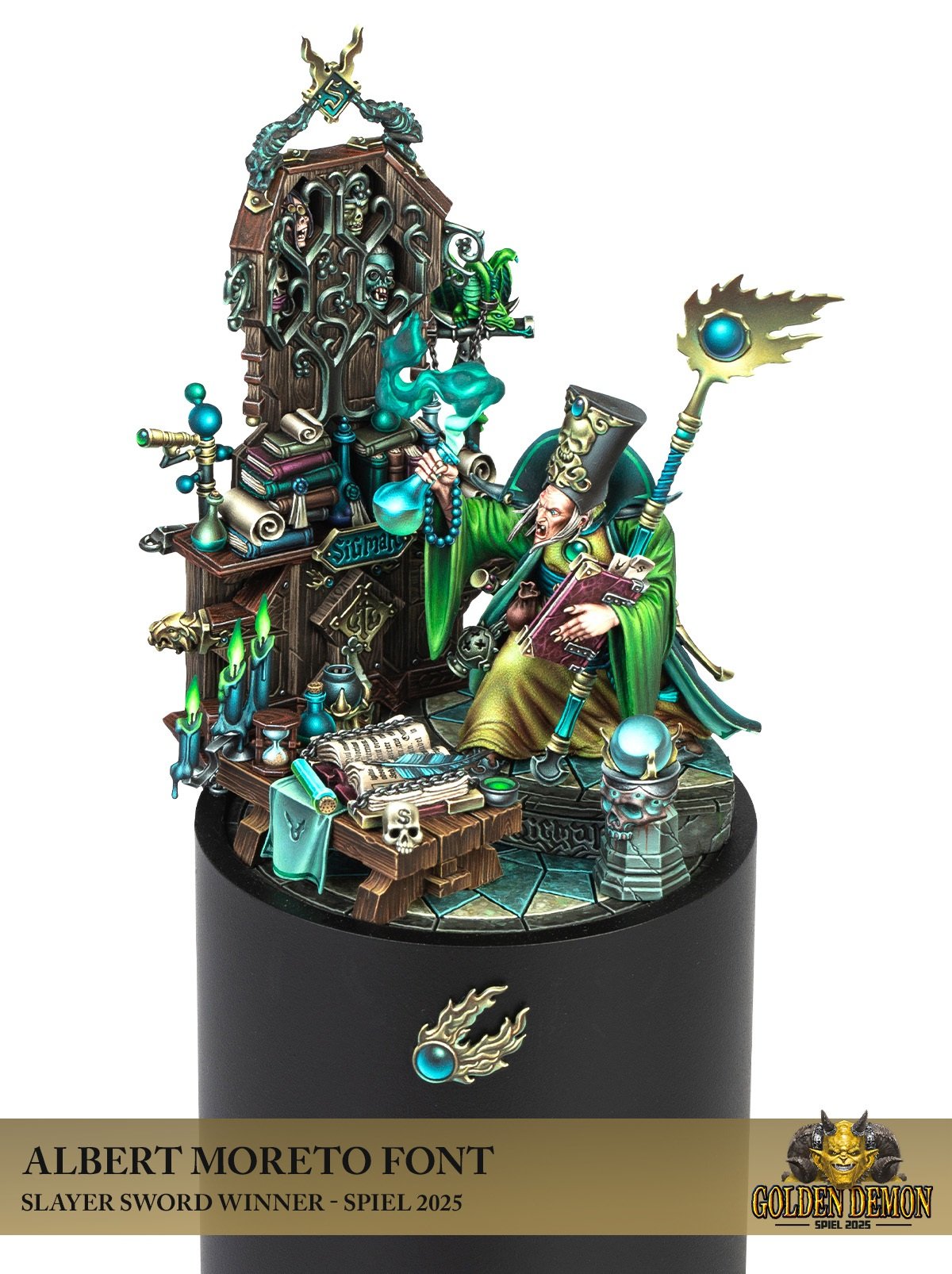 First off, I want to say congratulations to the winner of the Slayer Sword from the Golden Demon competition Albert Moreto Font. His painting and hobby skills are on incredible display with this piece.