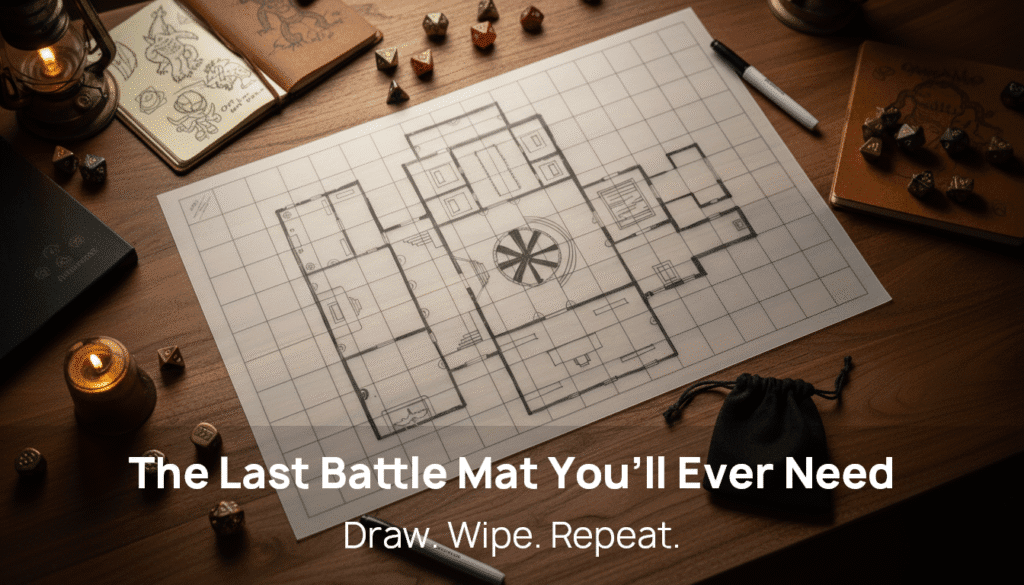 Bringing together a rewritable, curl-free, foldable, and Inkvera™ dry-erase compatible surface, the HEYtrace Battle Mat enables players and Game Masters to trace maps, mark evolving encounters, and erase — without harming original maps or generating paper waste.