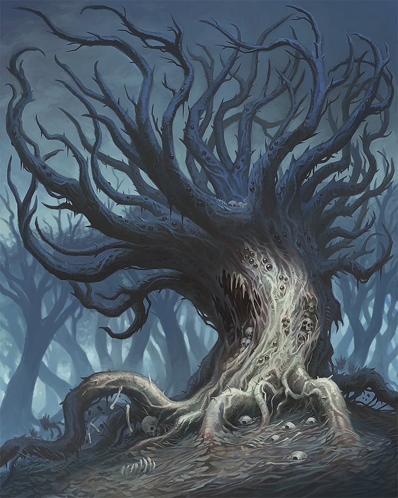 Now, in 5.5E, there’s a high-level creature known as the Gulthias Blight. This twisted tree is rotten with evil. It feeds on blood and despoils the land around it – and what makes it a particularly powerful final boss monster is the fact that it can create an army of blights. Twig blights, needle blights, vine blights; they can all be spawned from the 1d6 seeds expelled every time this creature finishes a long rest. With enough time, the blights might drown the living, especially since this tree can keep itself alive on any creature that is brought to it to be drained of blood.