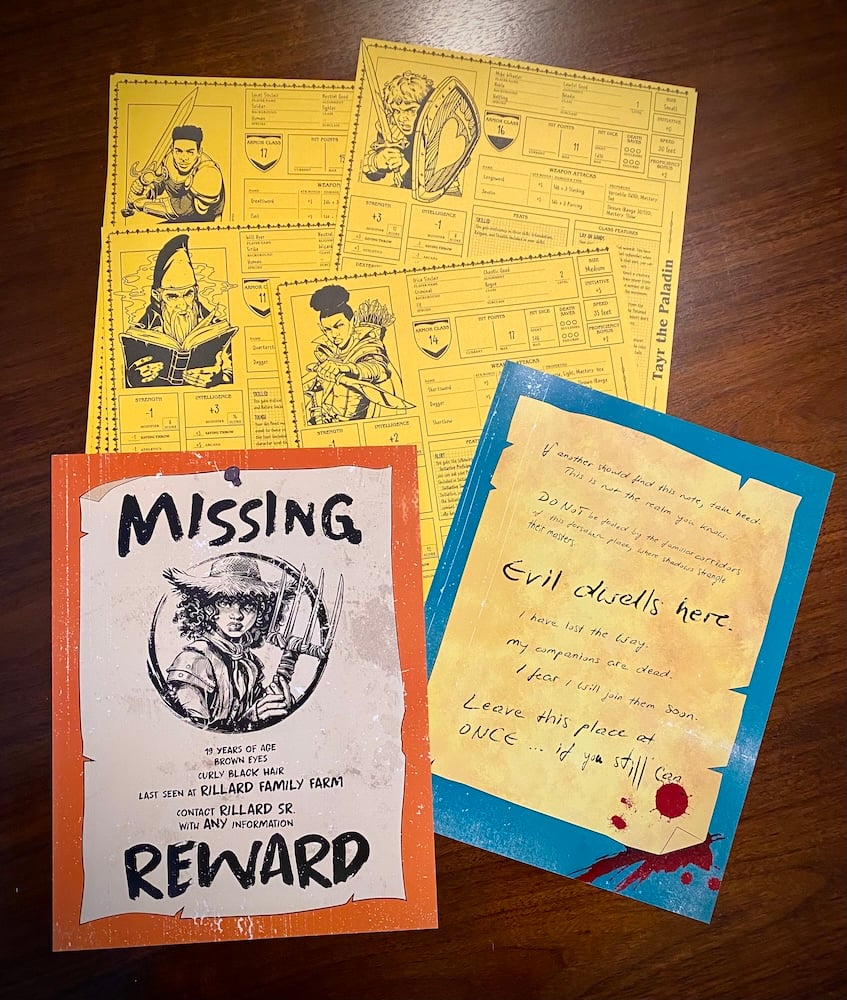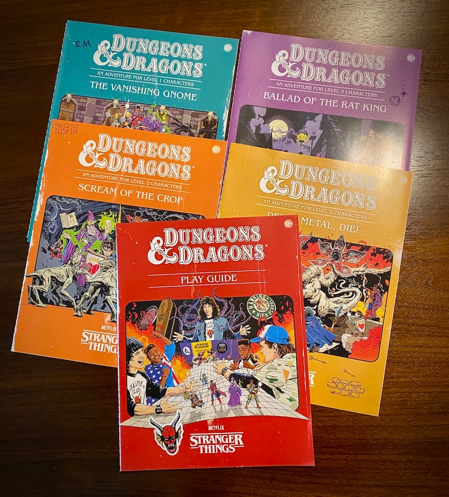 And you even get a taste of the handout game. They’re designed to look like something a person would have done for their D&D game, giving them a sort of hand-made vibe. It’s a nice angle, they don’t look overproduced, and it really nails that 80s feel.