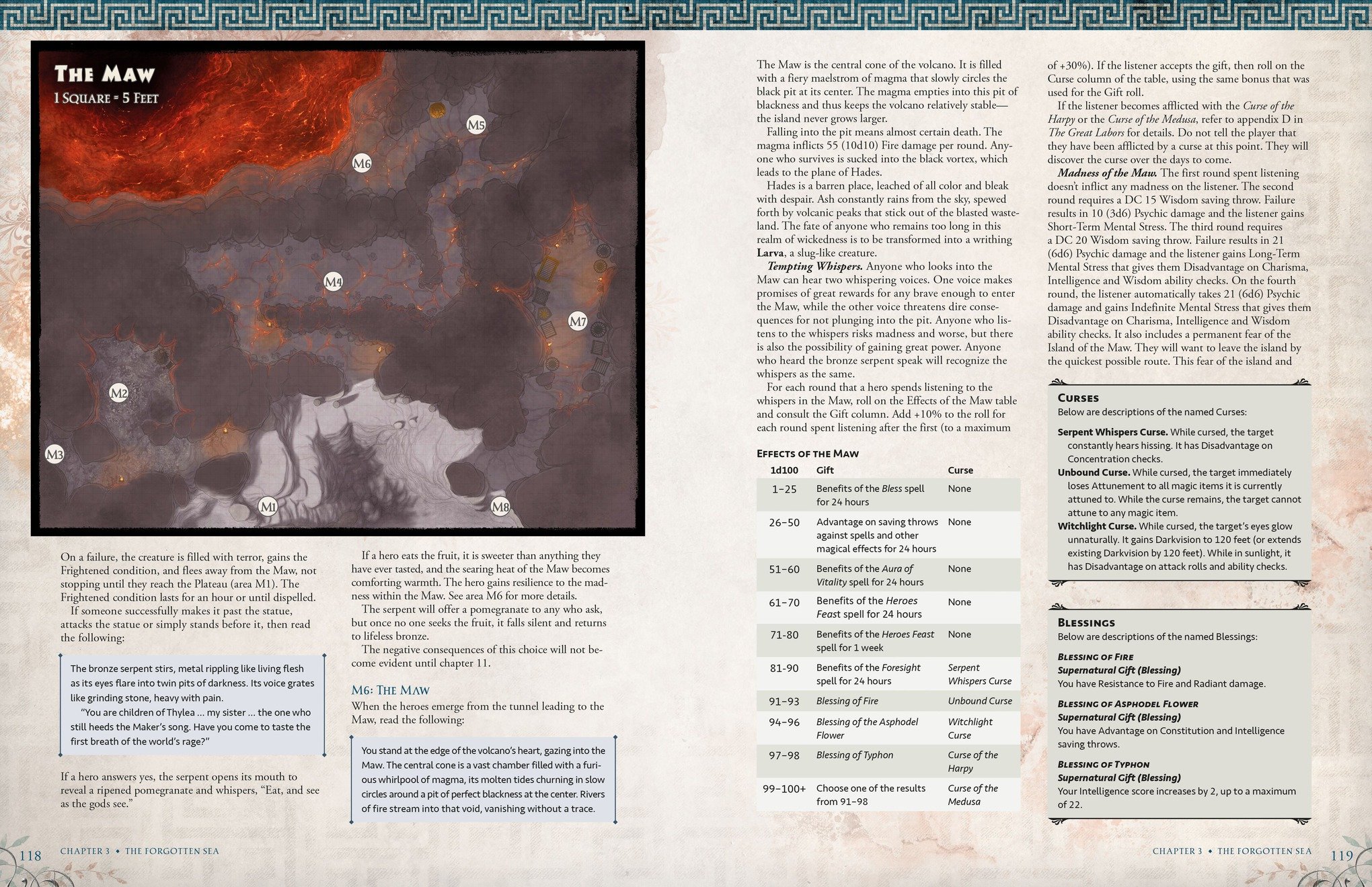 Ohlen says of the Glory System, “This is a different system than the [Raiders of the Serpent Sea] glory system. I want people to feel cinematic – and to have to actually do them to gain the benefit. As you gain glory, you earn a name – we give you suggestions – and you can make boasts with those names. But we tell the DM, your players have to actually make the boasts.”