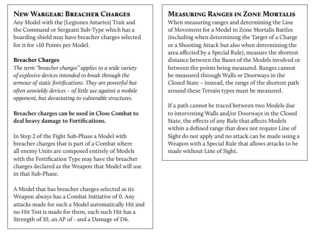 As you can see there are some minor changes and restrictions to what you can bring to a Zone Mortalis fight. That’s kind of the point! These battles represent those indoor battles of attrition and fire lanes. Personally, I really like that these missions give units you might not typically take a real chance to shine.