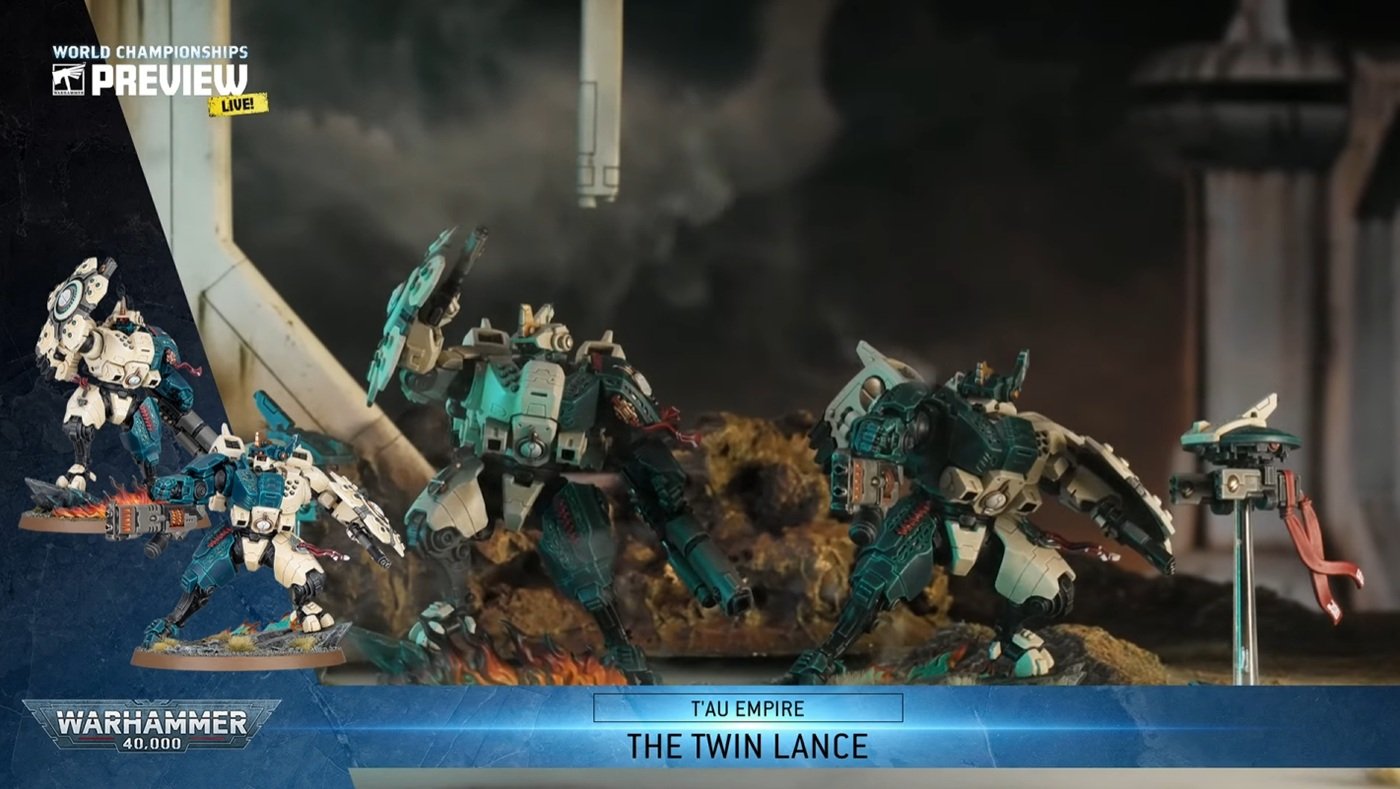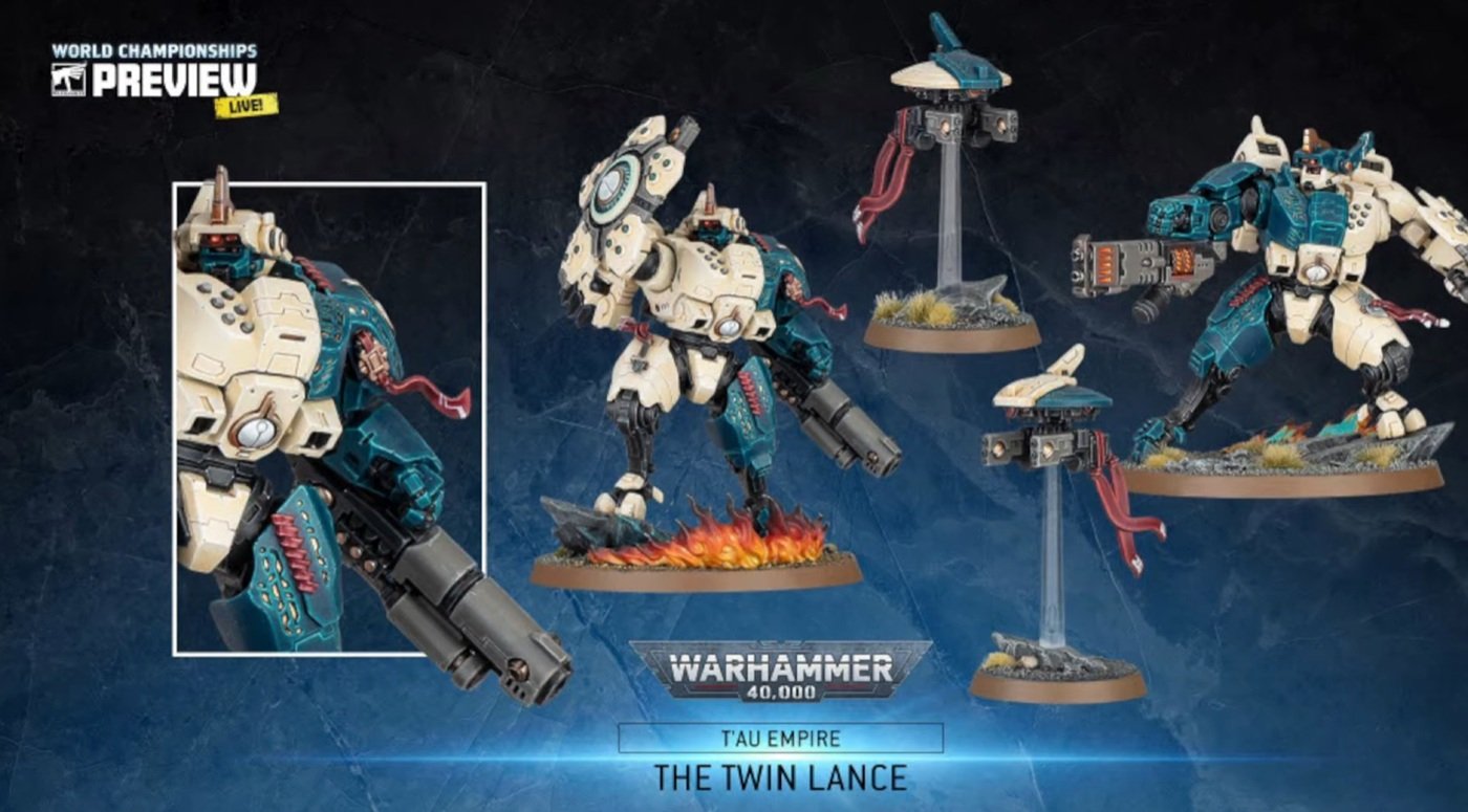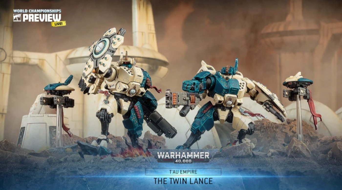 The Twin Lance is a pair of new T’au characters coming to show off for the Greater Good. They are universally liked by the T’au Cadres so you can have them join your army regardless of which one you’re running.