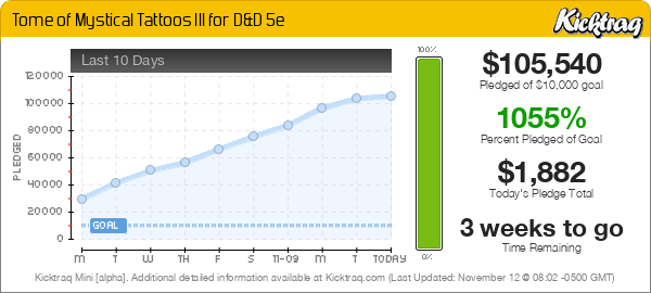 - WHY SPOTLIGHT THIS CAMPAIGN? This is the 3rd tome of tattoos for your 5e campaign. Over 200 magical tattoos to amp up your PCs or, if your GM is interested in making life difficult for the PCs, it’s time to tattoo a dragon! If you want to see their designs and ideas, this Kickstarter is ready to lay the ink on you.