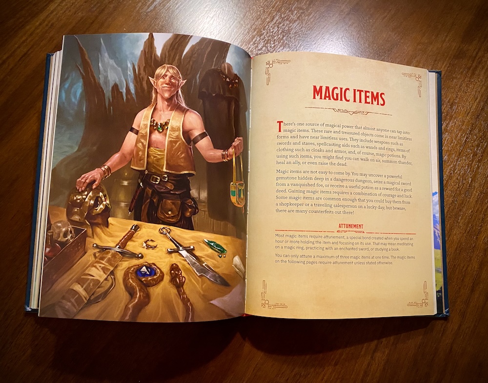 If you’ve never read one of these, and have younger gamers in your life, I highly recommend them. They present the facts of D&D but from the perspective of someone in the world. In older books, for instance, you learn what kinds of monsters you might be facing in the dungeon. And maybe you have some helpful advice from seasoned adventurers.