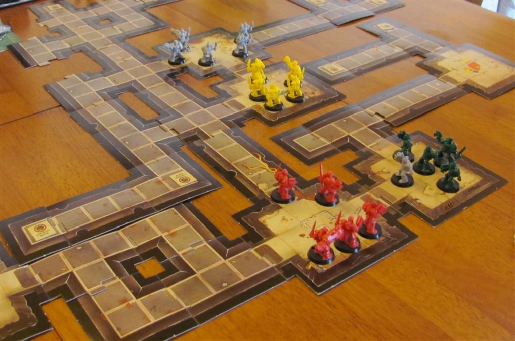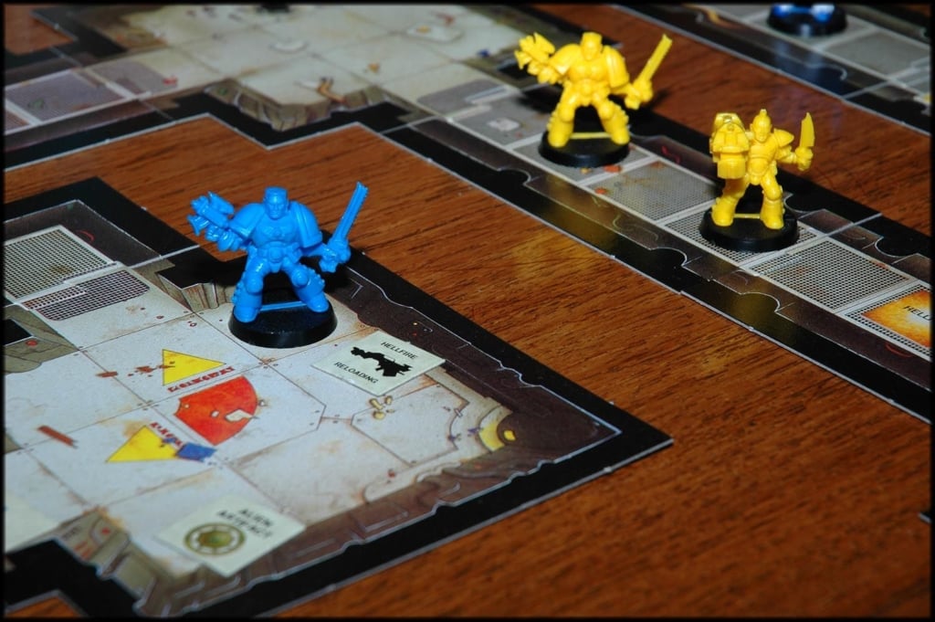 The game uses a board setup very reminiscent of Space Hulk. Once the ship is built, players choose a room and place their squad of Scouts there. Then players take turns placing the alien artifacts around the ship. Finally, each player draws 3 Event cards, and the game begins.