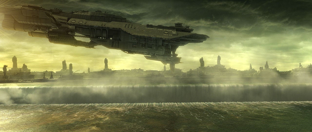 As frequently happens in these types of reckless pursuit, things quickly went awry. Both the Arbiter’s flagship and the Spirit of Fire were quickly pulled into conflict upon a Forerunner Shield World, laden with a fleet of Sojourner-class Dreadnoughts.