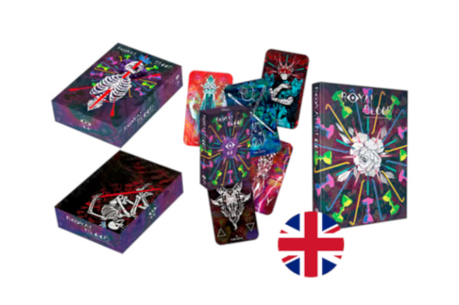 Rowan, Rook, and Decard will release a new, revised edition of the Royal Blood RPG with a deck of tarot cards, which are used to play the game. This tarot heist RPG will be available as three SKUs: The core rulebook, the tarot deck, and in limited quantities, the Royal Blood Magnificent Box.