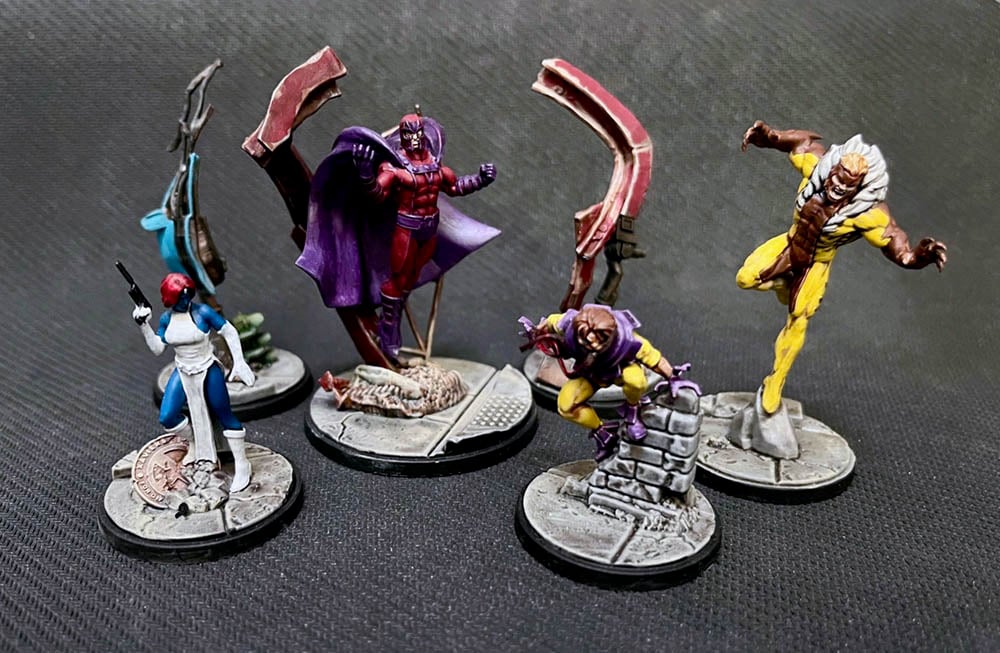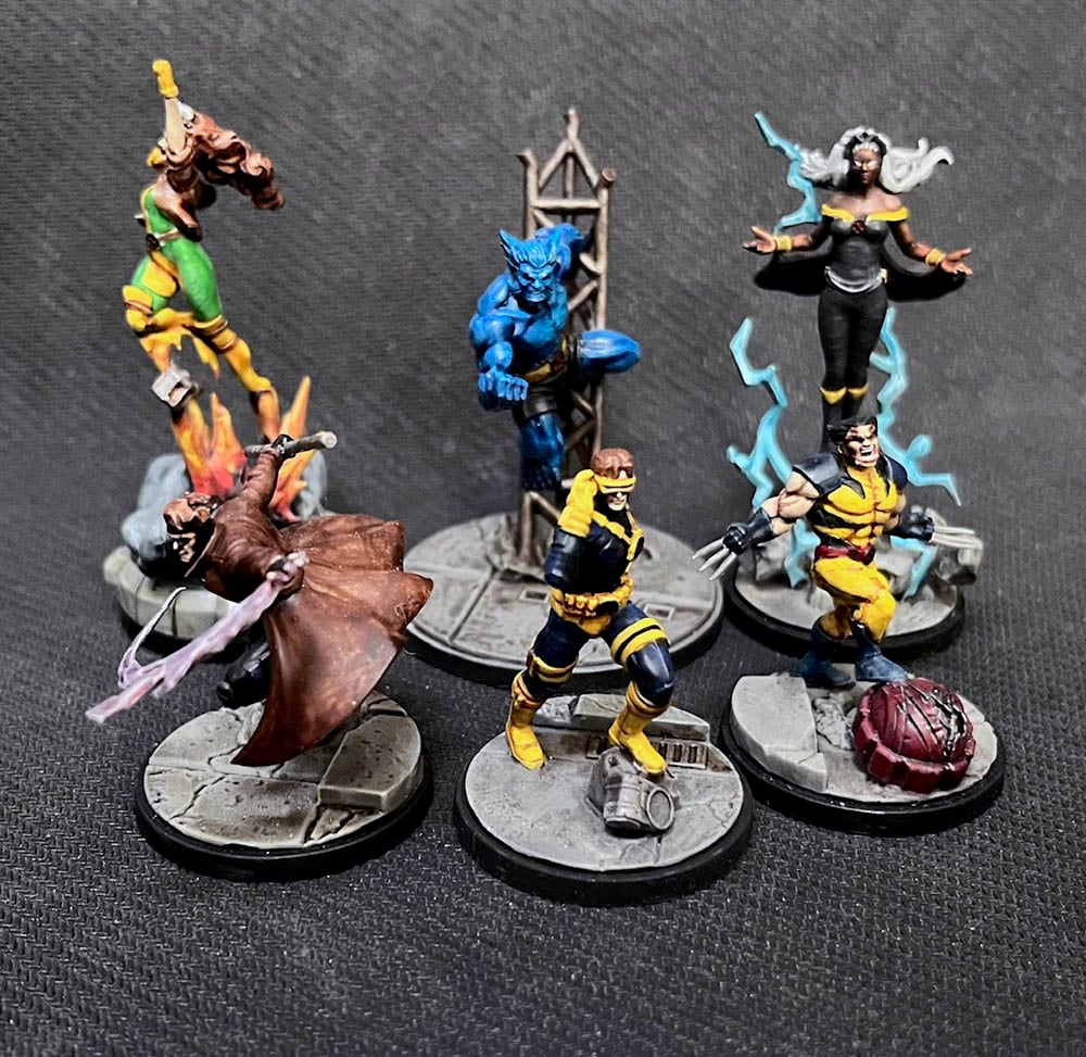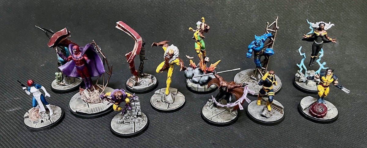 Now, as I mentioned these miniatures have been out for a while. So while I didn’t exactly build all them from this particular set, I’ve collected and painted all of them already. So instead of grey plastic here’s my X-Men Starter Set all painted up.