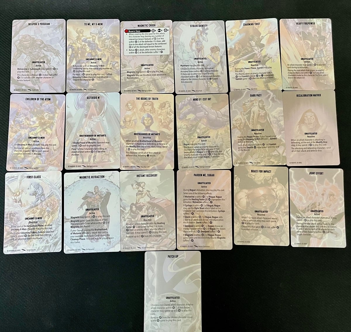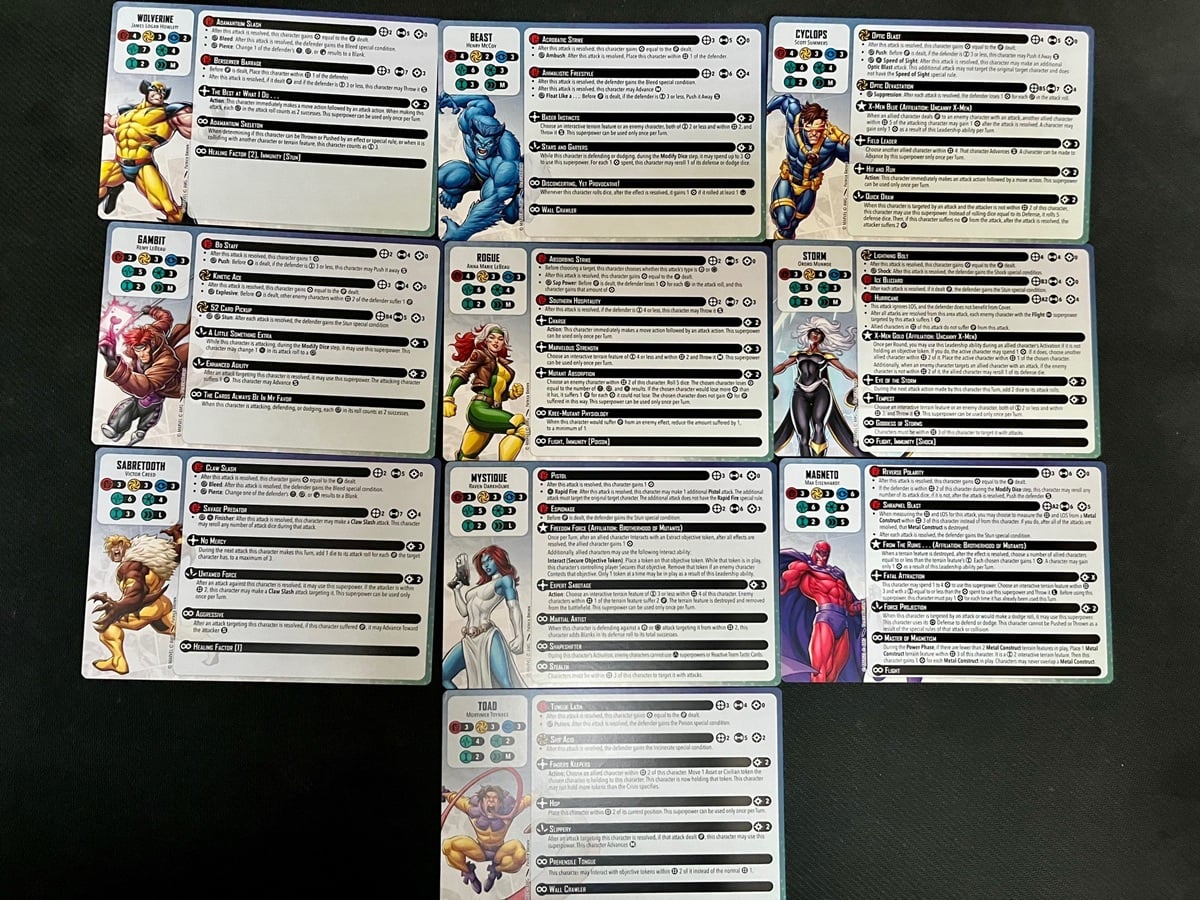 Oh and let’s not forget the Team Tactic Cards. There’s 19 cards in total so there’s plenty of options to choose from. Also, because of the Characters included you’ve got four different leaders you can use. There’s two for the X-Men and two for the Brotherhood of Mutants. So you’ve got a fairly versatile set of characters and Team Tactics to work with.