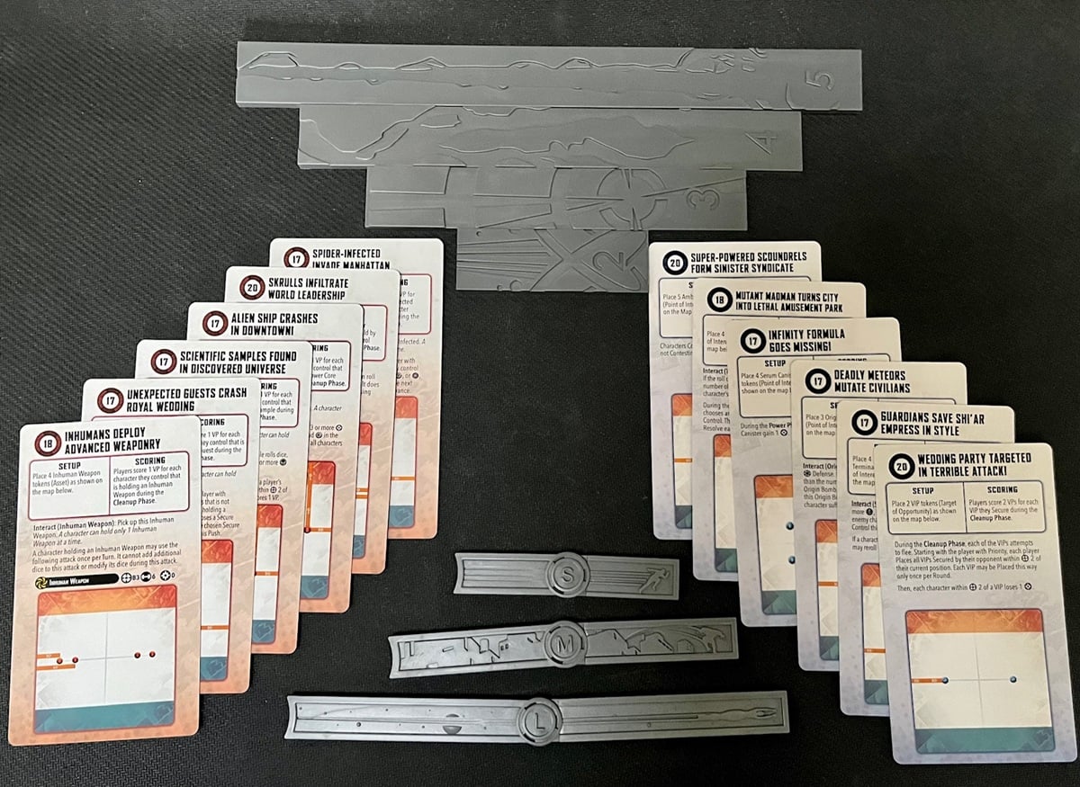 There’s also the range and movement tools as well as missions for play. It’s worth noting that the missions themselves are a mix of ones you might find in the Earth’s Mightest Core Set and the War of Kings box with Gladiator. I’m glad to see AMG include these as part of the starter just because this really is everything you need to actually jump in and play MCP. It’s a full roster of characters and accessories.