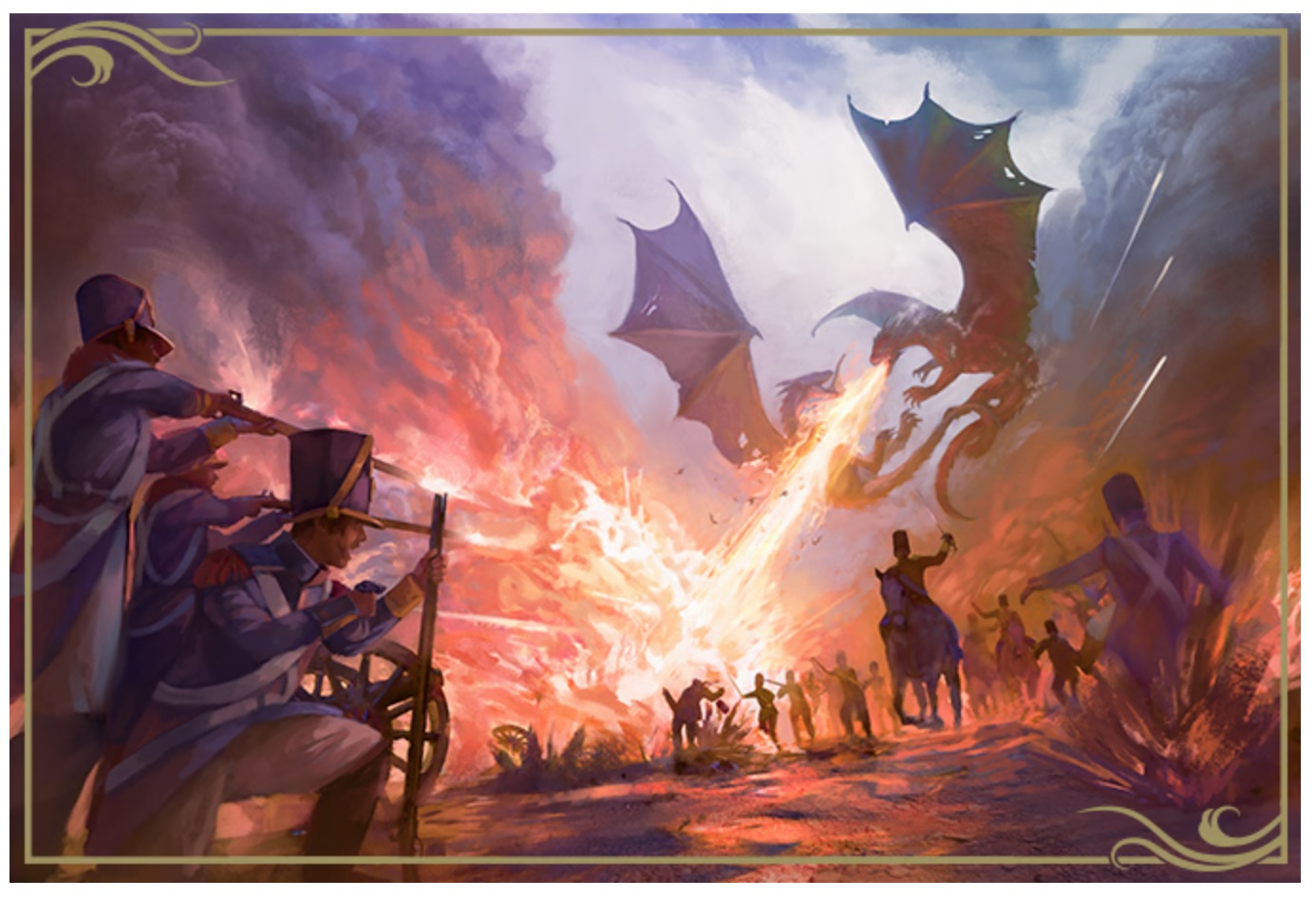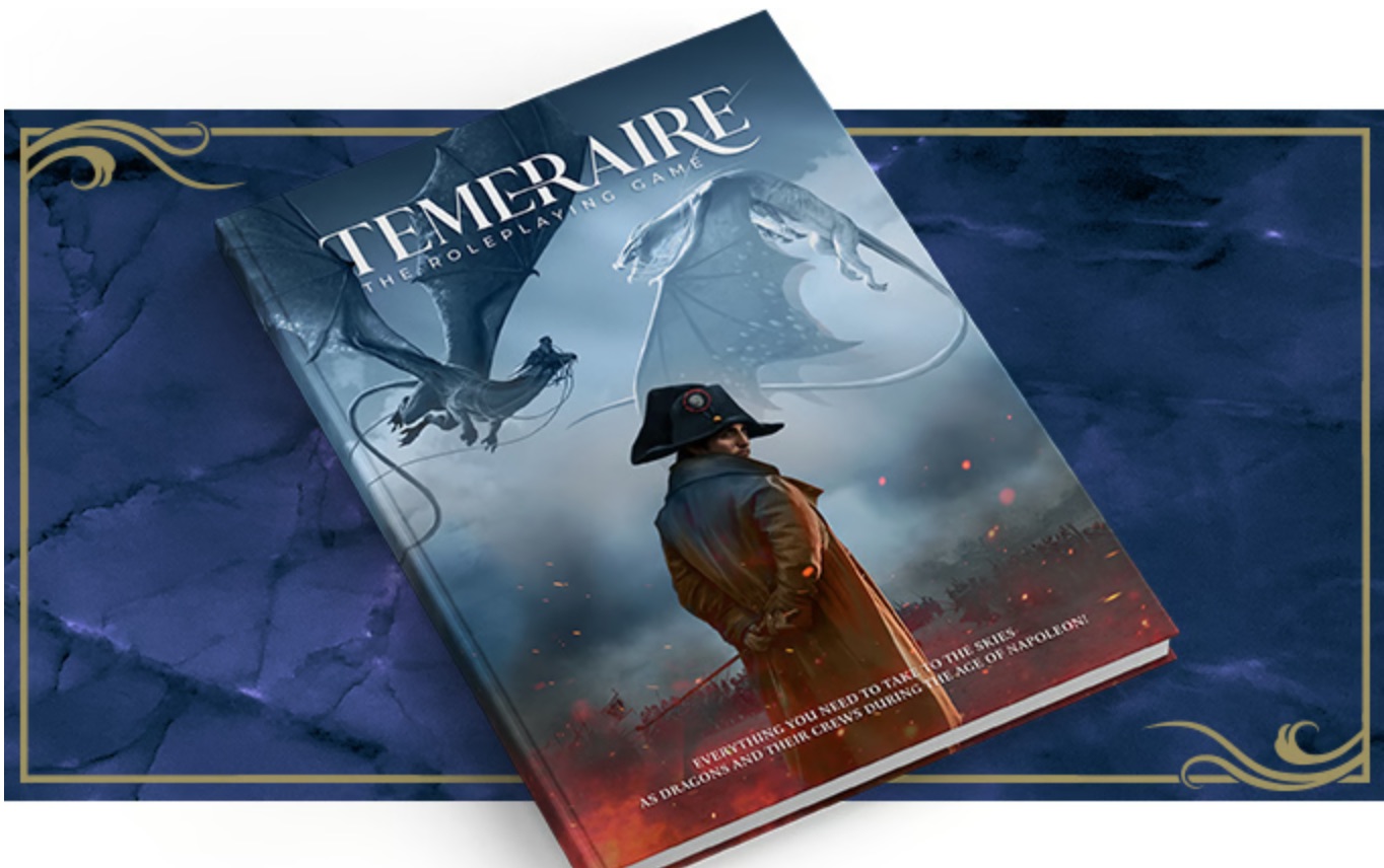“Prepare to take to the skies as the aviators and dragons of the Napoleonic era in Temeraire: The Roleplaying Game. Fight in epic military battles, bond with your dragon (or your rider), and follow your passions into Regency era romance. Alongside your fellow dragons and aviators, discover the balance between your duties and your desires as war rages across Europe!”